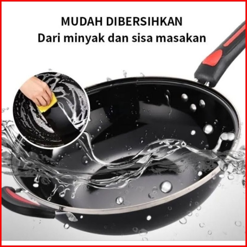 Wajan Enamel Panci Hitam Kuping Gagang Panjang Wajan Anti Gores 34 Cm