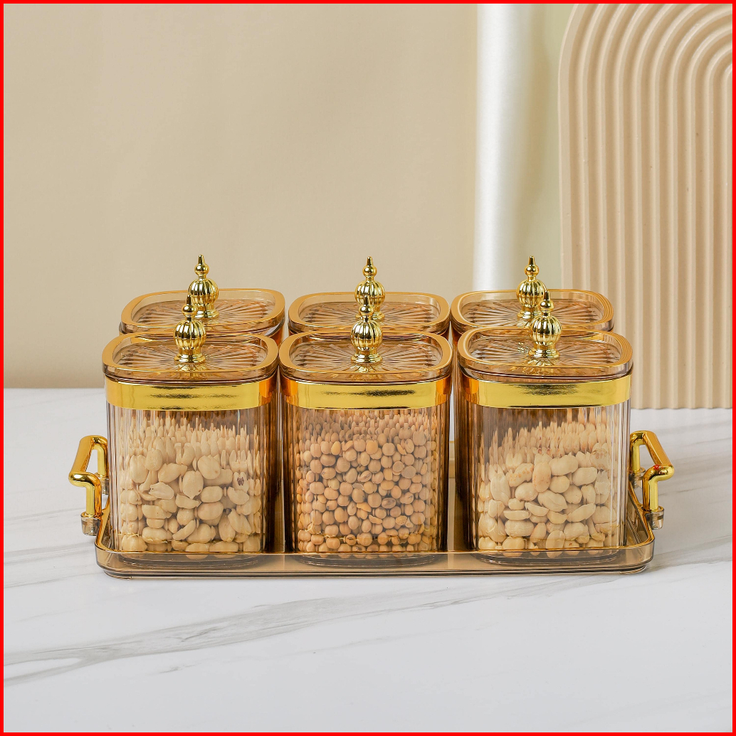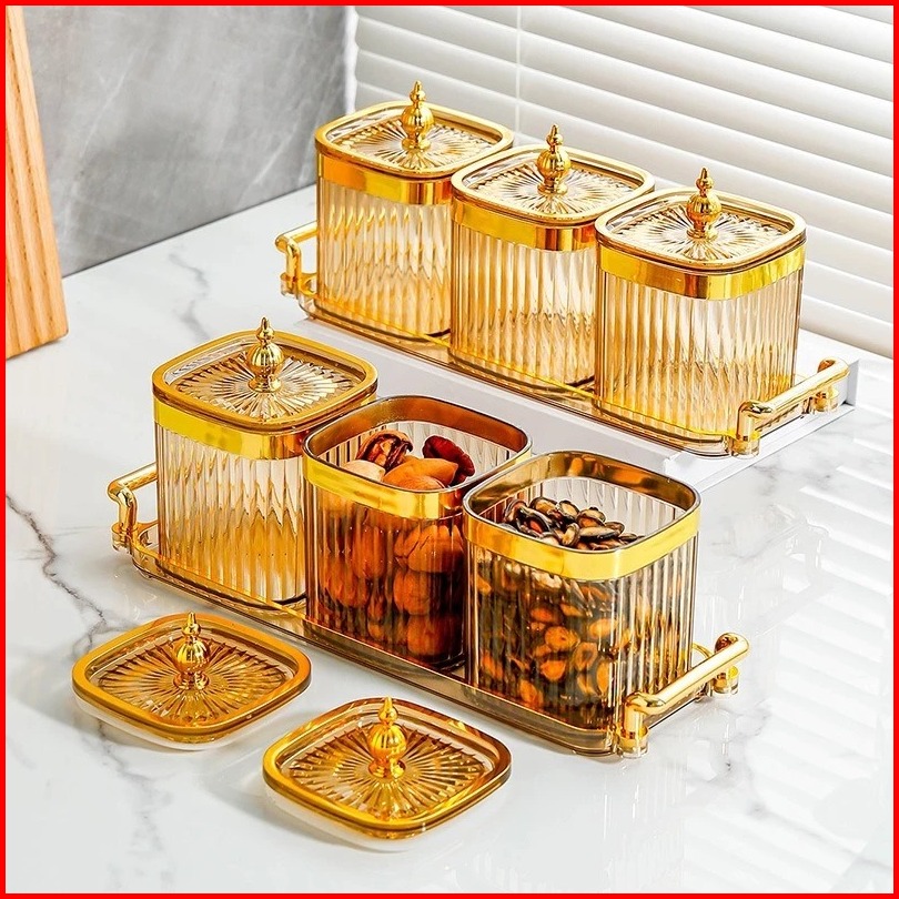 Ideame Toples Set Isi 3 4 6 Set Toples Penyimpanan Makanan Dengan Nampan Snack Tray Akrilik Toples Nampan Makanan Ringan