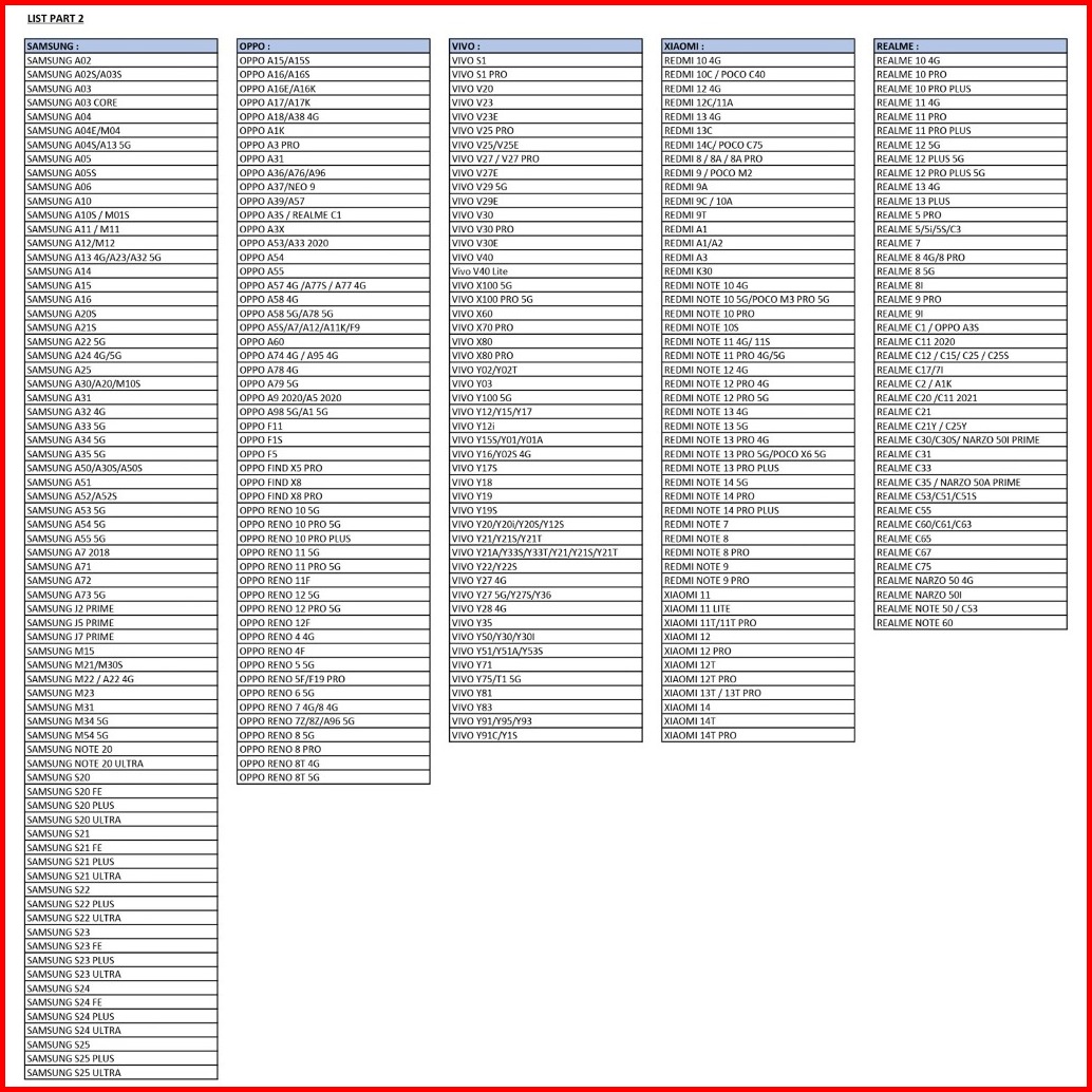 (TYPE LAIN DI CHAT), SAMSUNG A51, SAMSUNG A12/M12, SAM A13 4G, SAMSUNG A14, SAMSUNG A15, SAMSUNG A20S, SAMSUNG A21S, SAMSUNG A22/5G, SAMSUNG A24 4G/5G, SAMSUNG A25, SAMSUNG A30/A20/M10S, SAMSUNG A31, SAMSUNG A32 4G, SAMSUNG A33 5G, SAMSUNG A34 5G, SAMSUNG A35 5G, SAMSUNG A50/A50S/A30, SAMSUNG A52/A52S, SAMSUNG A53 5G, SAMSUNG A54 5G, SAMSUNG A55 5G, SAMSUNG A71, SAMSUNG A72, SAMSUNG A73 5G, SAMSUNG M21/M30S, SAMSUNG M23, SAMSUNG M31, SAMSUNG M34 5G, SAMSUNG M54 5G, SAMSUNG S20 FE, SAMSUNG S20, SAMSUNG S20 PLUS, SAMSUNG S20 ULTRA, SAMSUNG S21 FE, SAMSUNG S21, SAMSUNG S21 PLUS, SAMSUNG S21 ULTRA, SAMSUNG S22, SAMSUNG S22 PLUS, SAMSUNG S22 ULTRA, SAMSUNG S23 FE, SAMSUNG S23, SAMSUNG S23 PLUS, SAMSUNG S23 ULTRA, SAMSUNG S24, SAMSUNG S24 PLUS, SAMSUNG S24 ULTRA, SAMSUNG S25, SAMSUNG S25 PLUS, SAMSUNG S25 ULTRA, SAMSUNG A23 4G/5G, SAMSUNG A32 5G