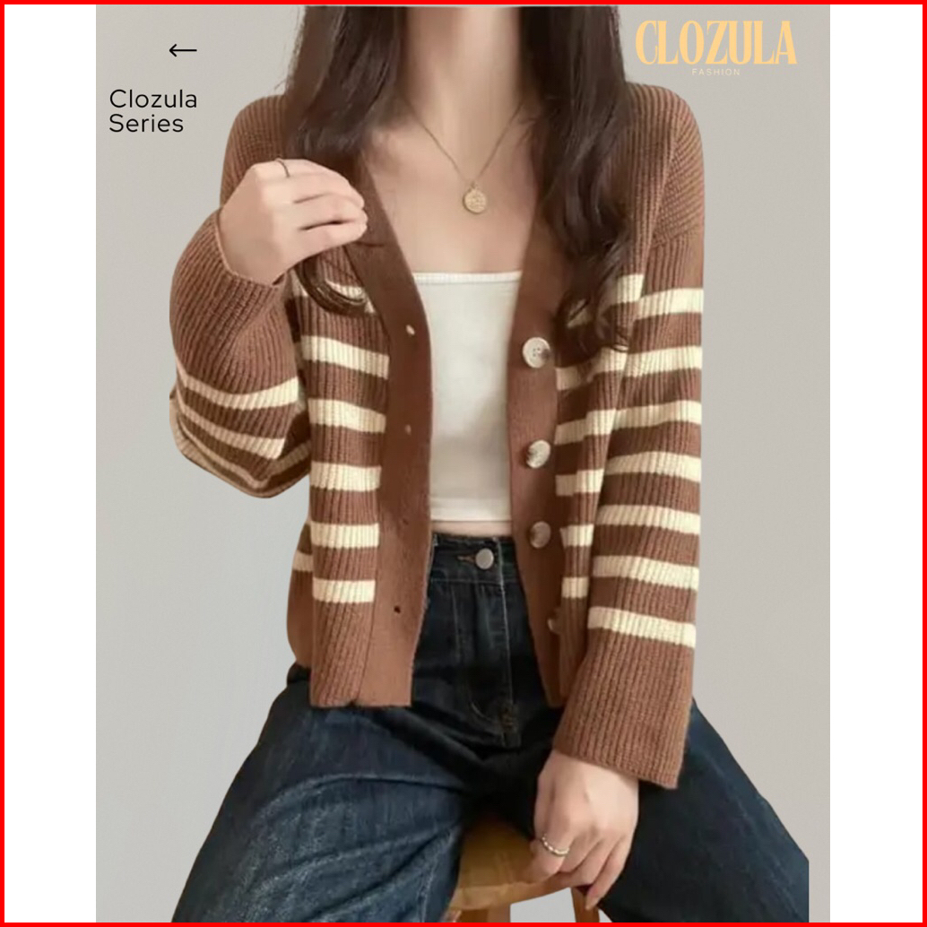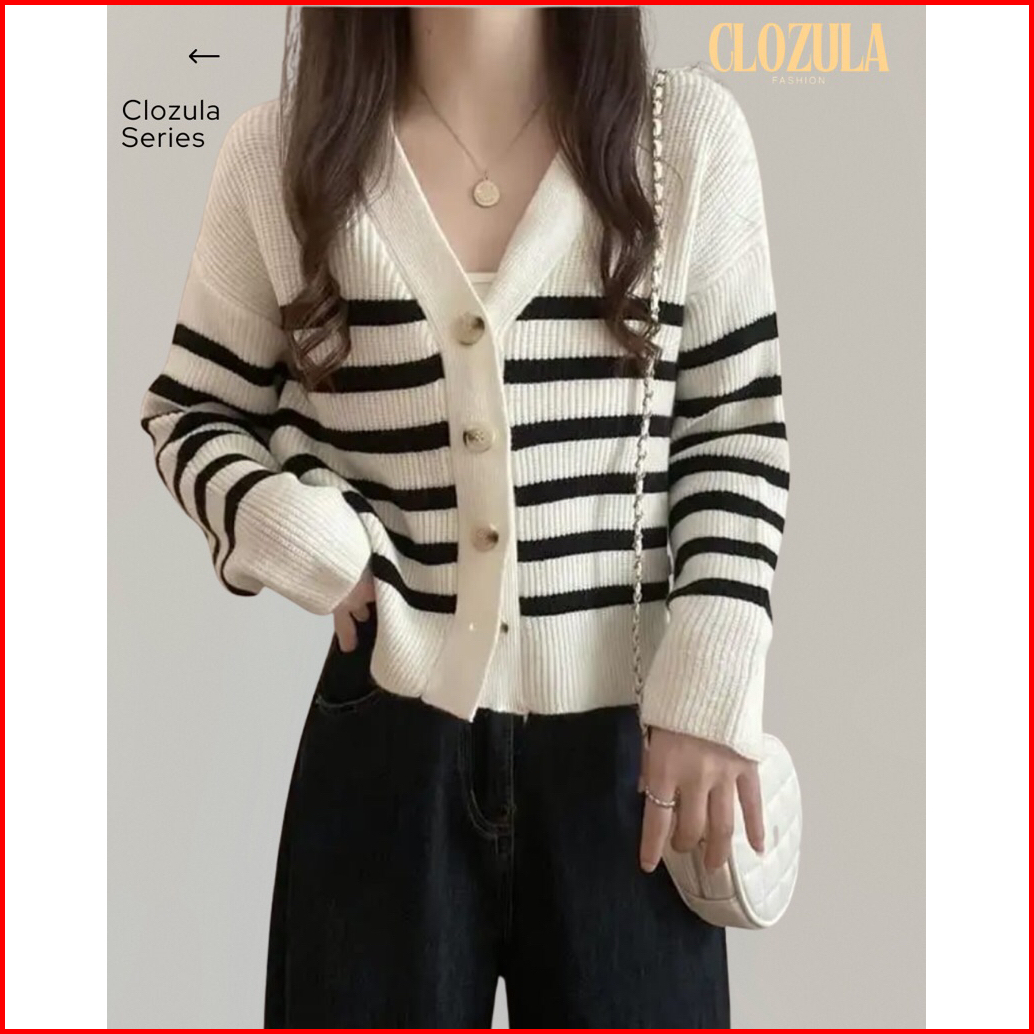 Cardigan Stripe Korean Cewek Casual Wanita Remaja Dewasa Outer - Baju Rajut Untuk Wanita
