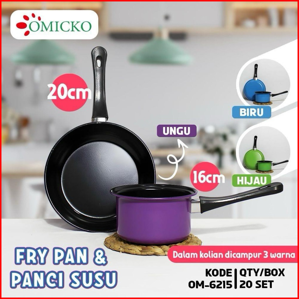 Set Panci Omicko Frypan 20cm Panci Susu 16 Cm - Anti Lengket Tahan Lama