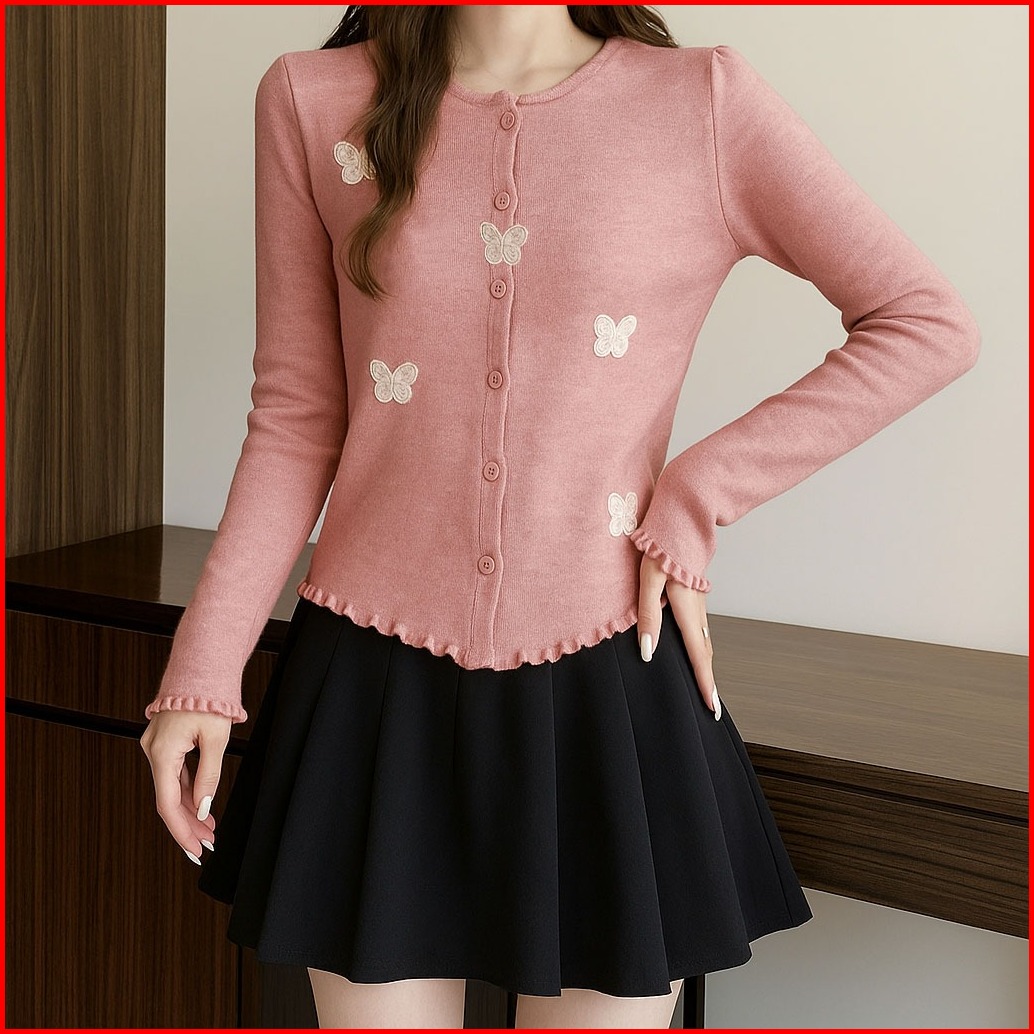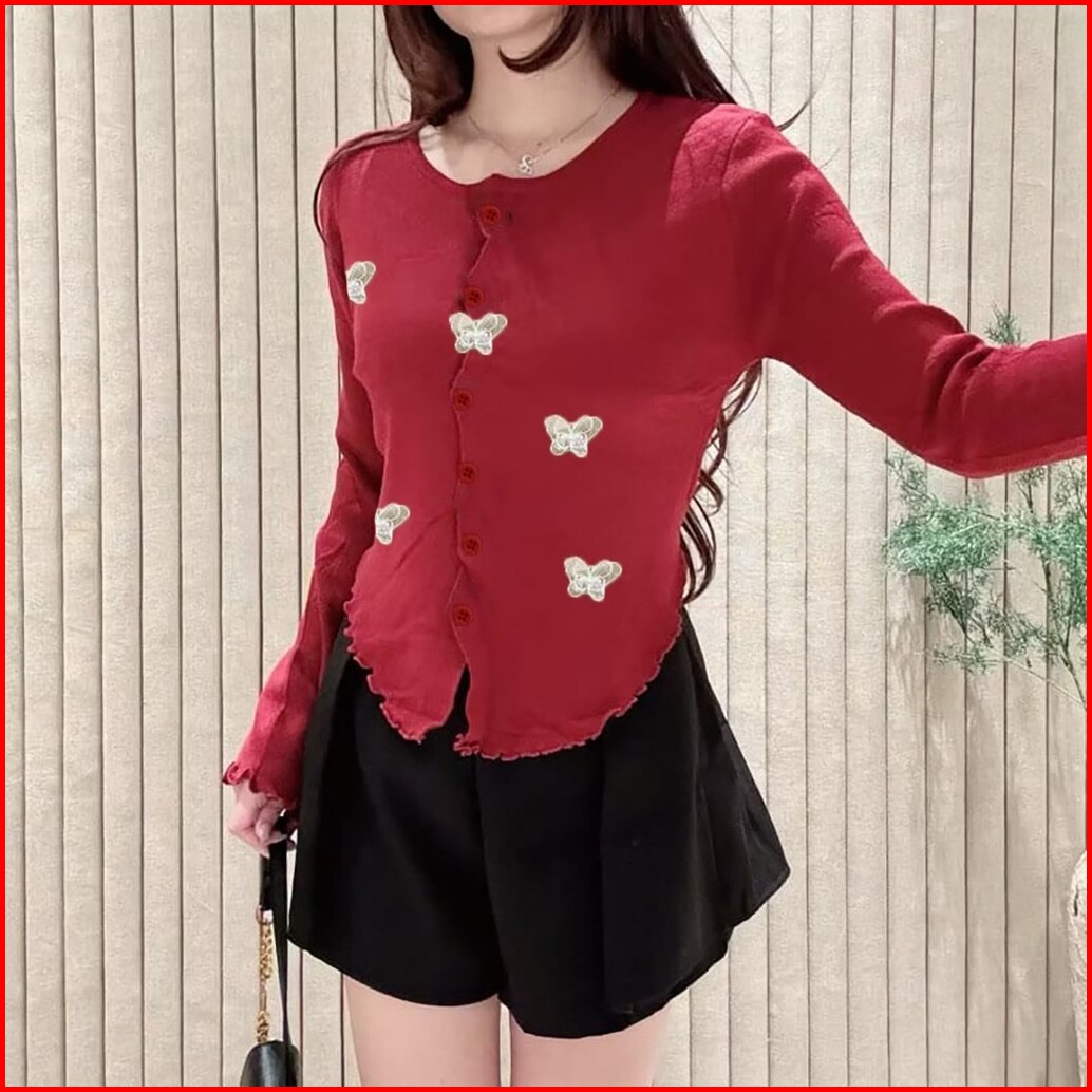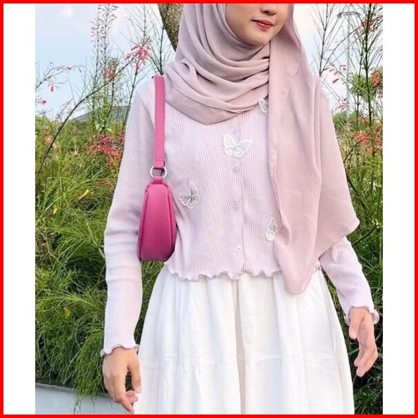 Vallina Outfit - Cardigan Kupu Knit Butterfly Cardy Outer Wanita Remaja Matt Knit Premium Casual
