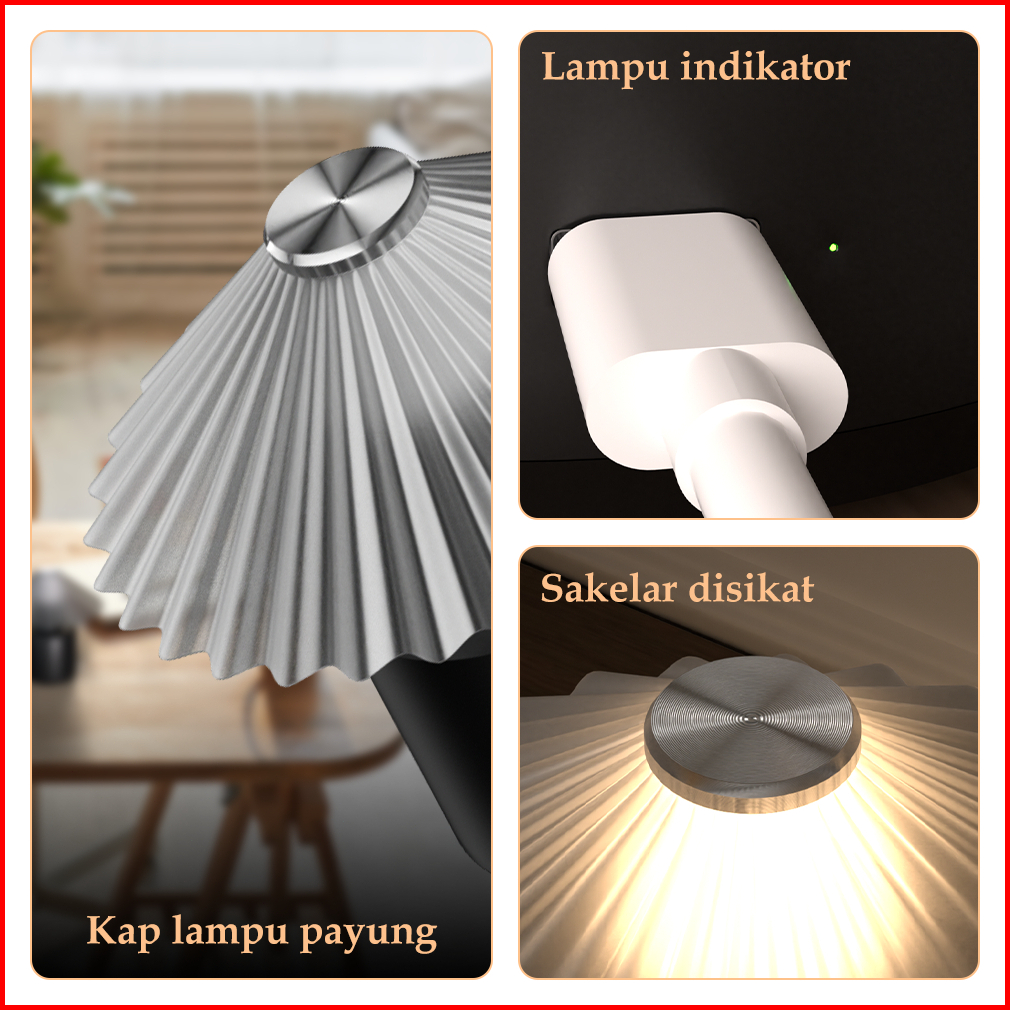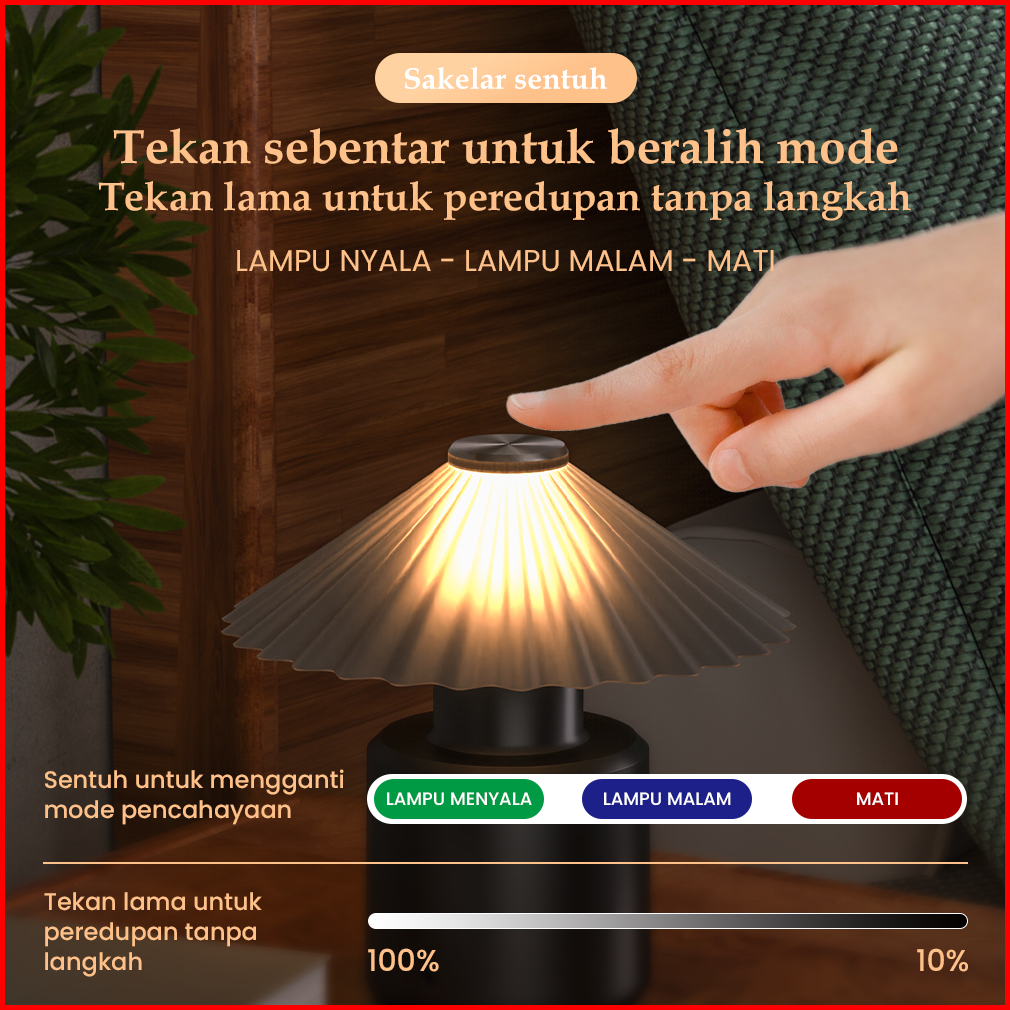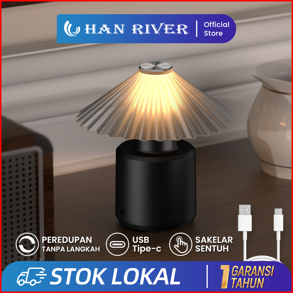Han River Menyentuh Lampu Tidur 3 Warna 5w Wireless Lampu Meja 2000mah 15-40jam Tahan Lama Lampu Bedside