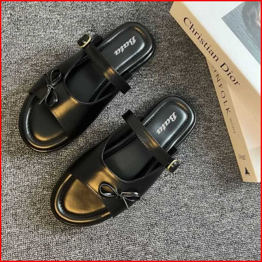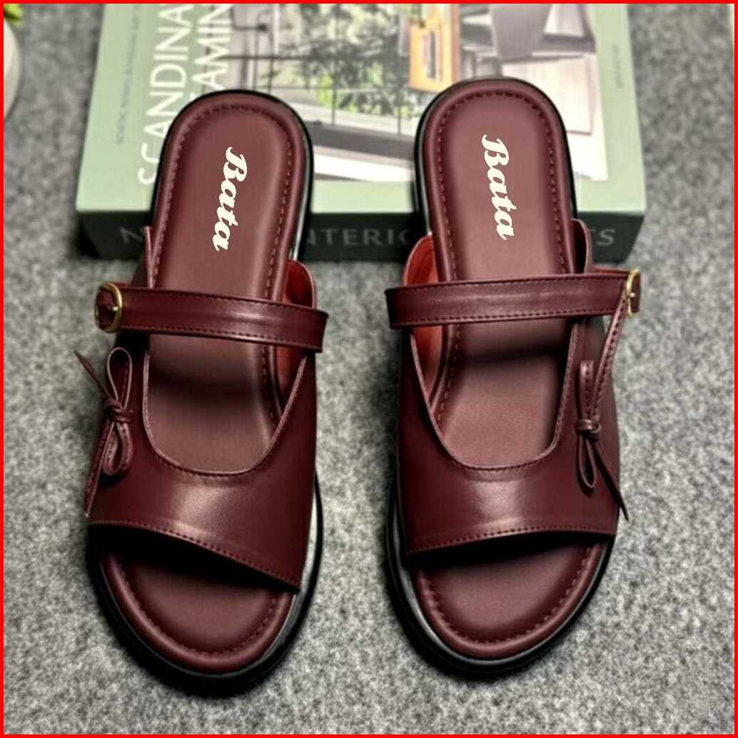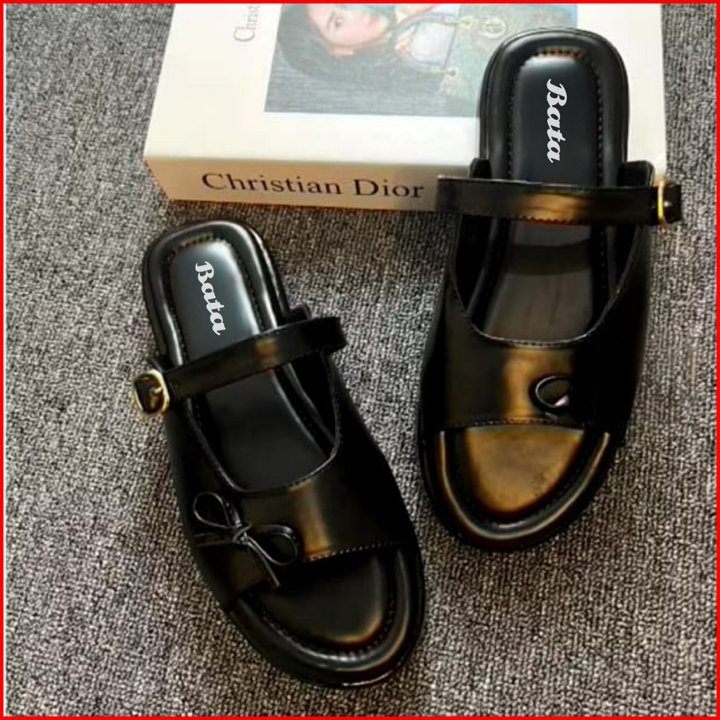 Bata Sandal Wanita Hak Tinggi Sandal Slop Motif Pita Sandal Terbaru 2025 Gesper