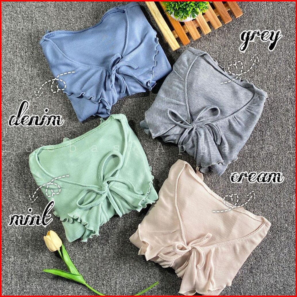 Cardigan Outer Crop Top Cewek Wanita Model Rumbai Ruffle Tali Rib Rajut
