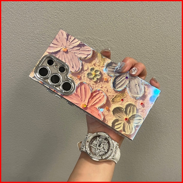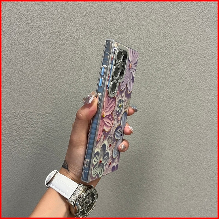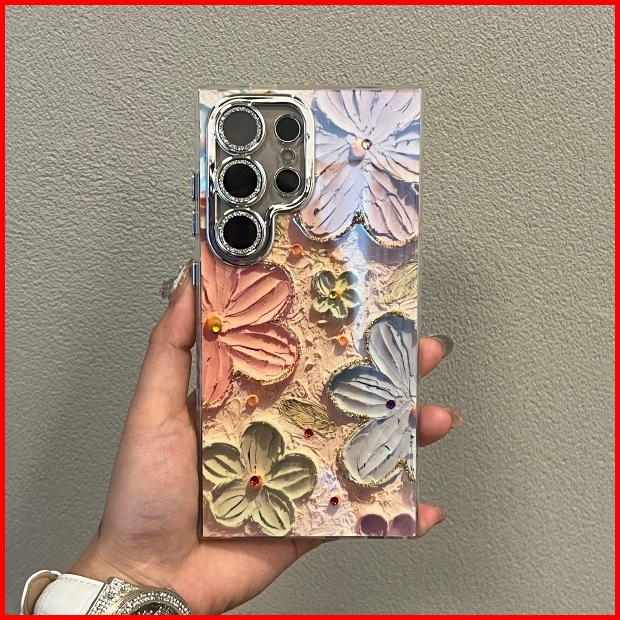 Fashion Diamond Epoxy Blue Light Oil Painting Bunga Phone Case For Samsung Galaxy S25 Ultra S25 S24 S23 S22 Ultra Luxury