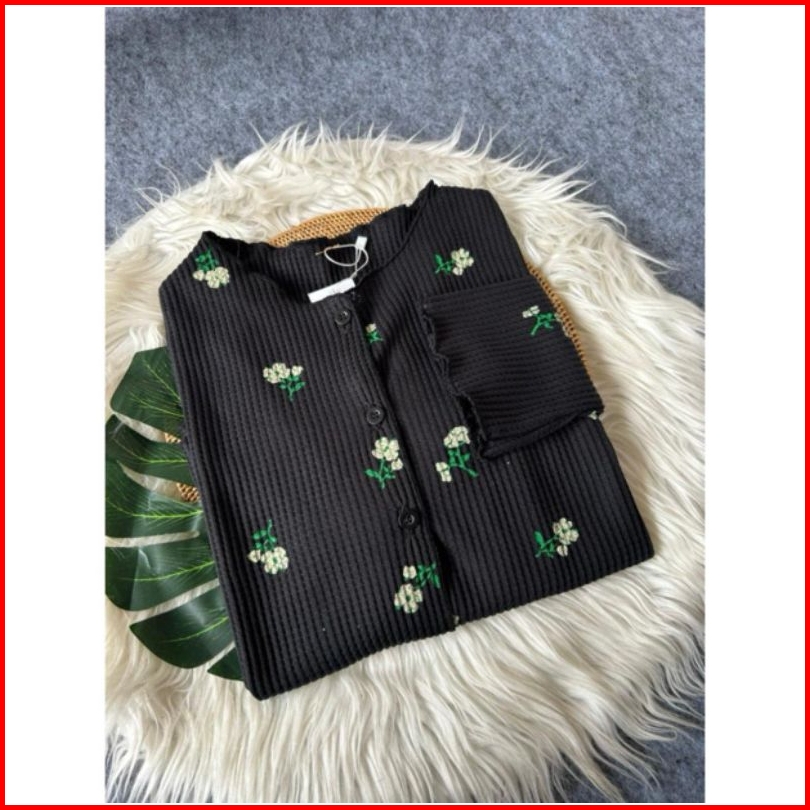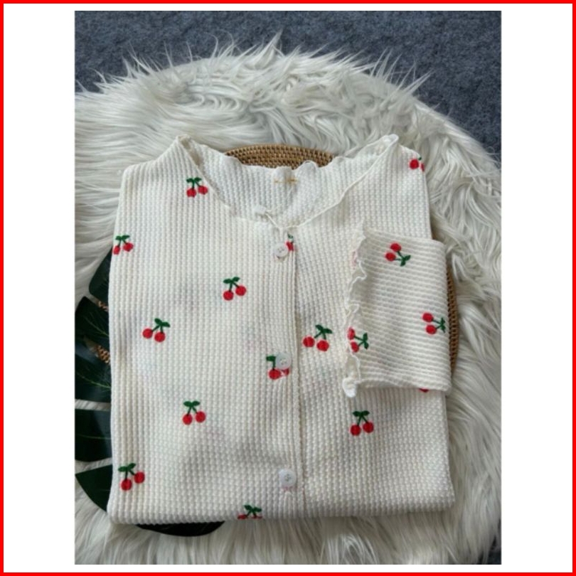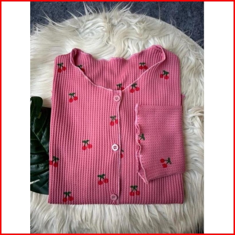 Cardigan Crop Top Rajut Waffle Knit Wanita Baju Atasan Wanita Crop Top Korean Style
