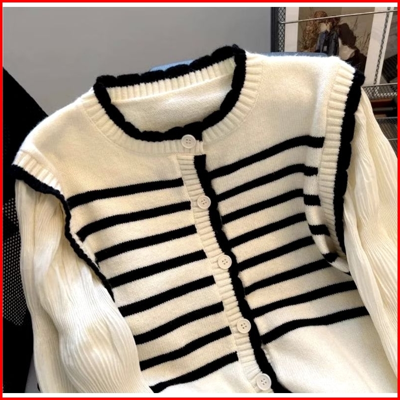 Tp85 Cardigan Rajut Sweater Korean Santai Round Neck Setrip Baju Panjang Knitwear Wanita