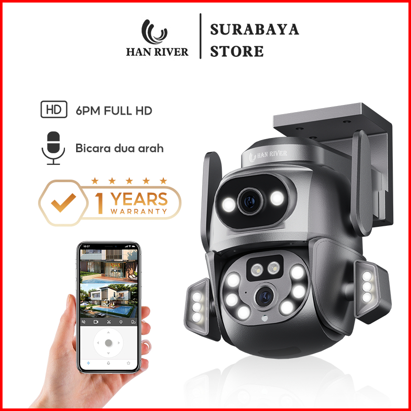 Han River Cctv Outdoor Camera 6mp Dual Lens Wifi Resolusi Camera Hd Ip67 Rotasi 360 Dan Vertikal 107 Waterproof