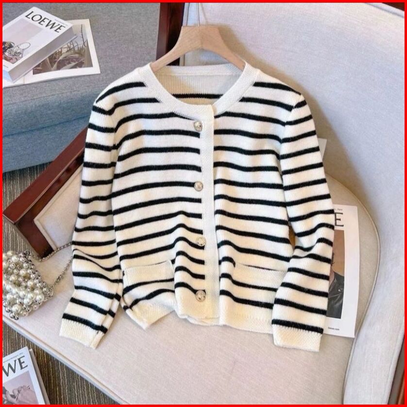 Lissa Knit Korean Fashion Cardigan Chessy Cardy Stripe Rajut Premium By Auroraknitwear.id