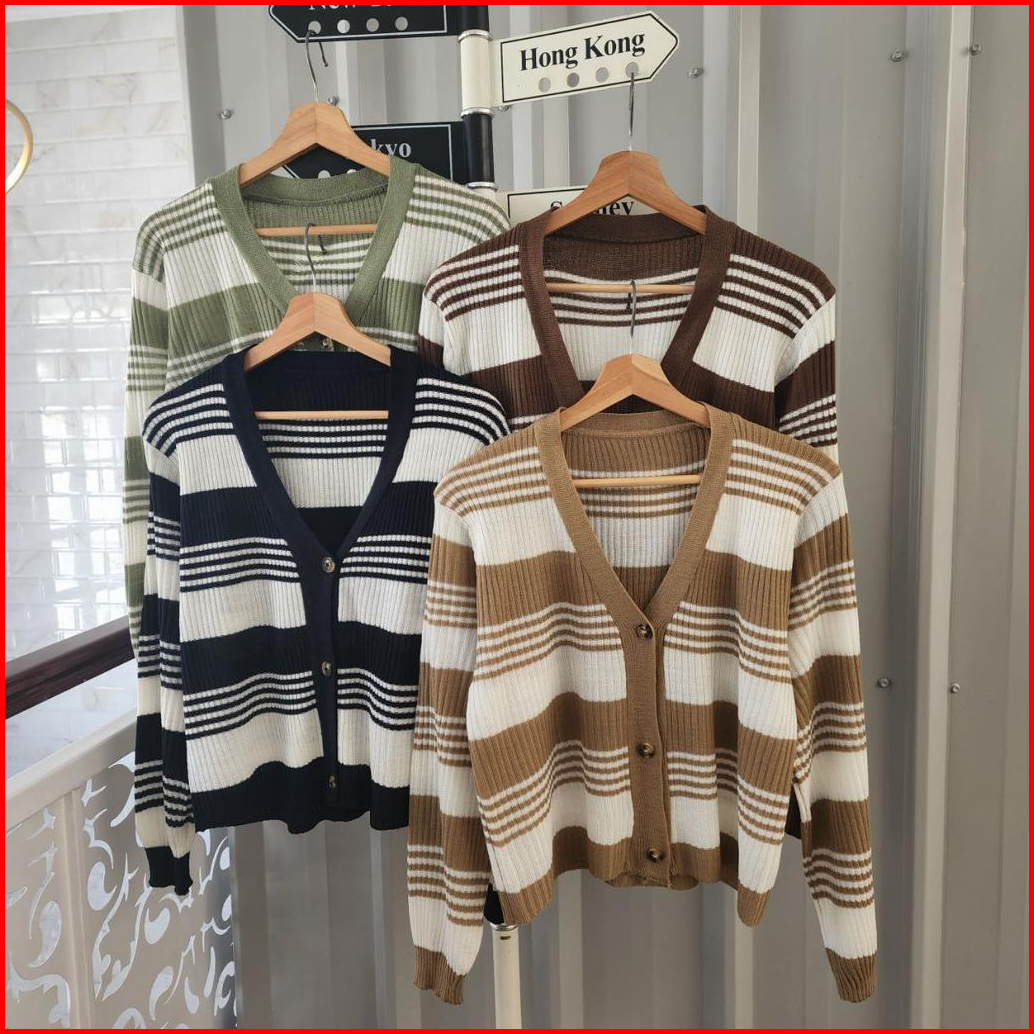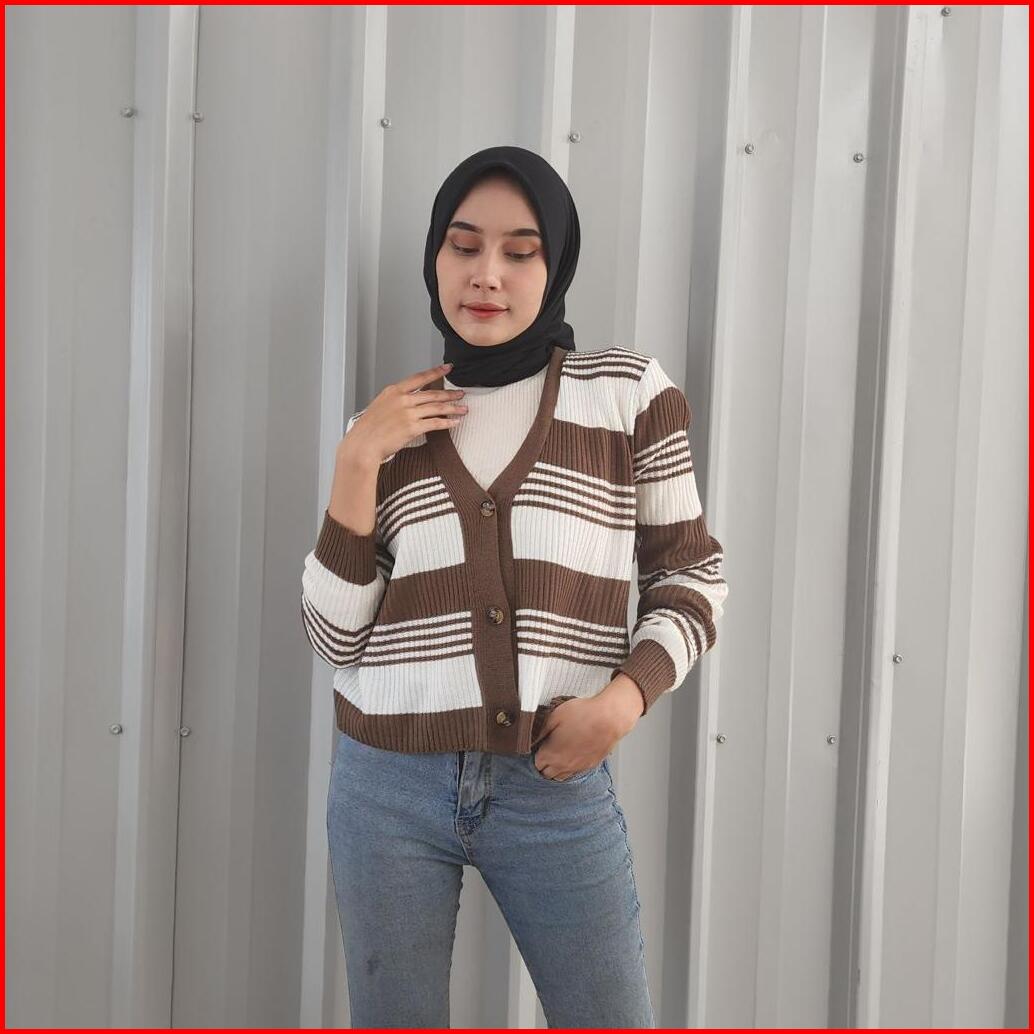 Aragon Jennie Cardigan Rajut Wanita Baju Atasan Wanita Premium Cardigan Knitwear Stripe Korean Style Tangan Panjang