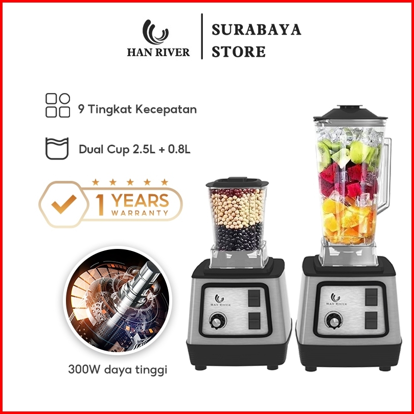 Han River Blender 2.5l 0.8l Dual Cup Multifungsi Blender Mixer Lce Crusher Hrpbj01bk