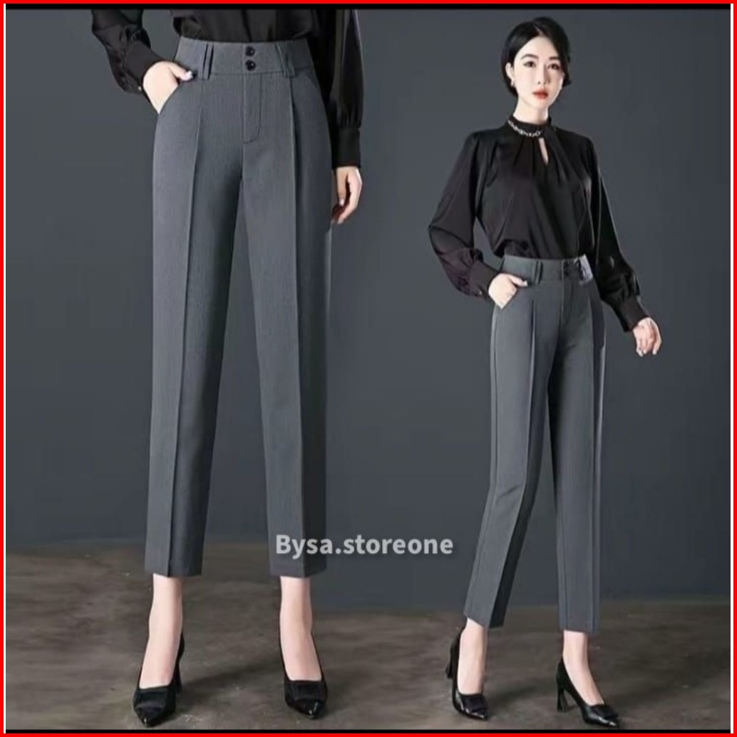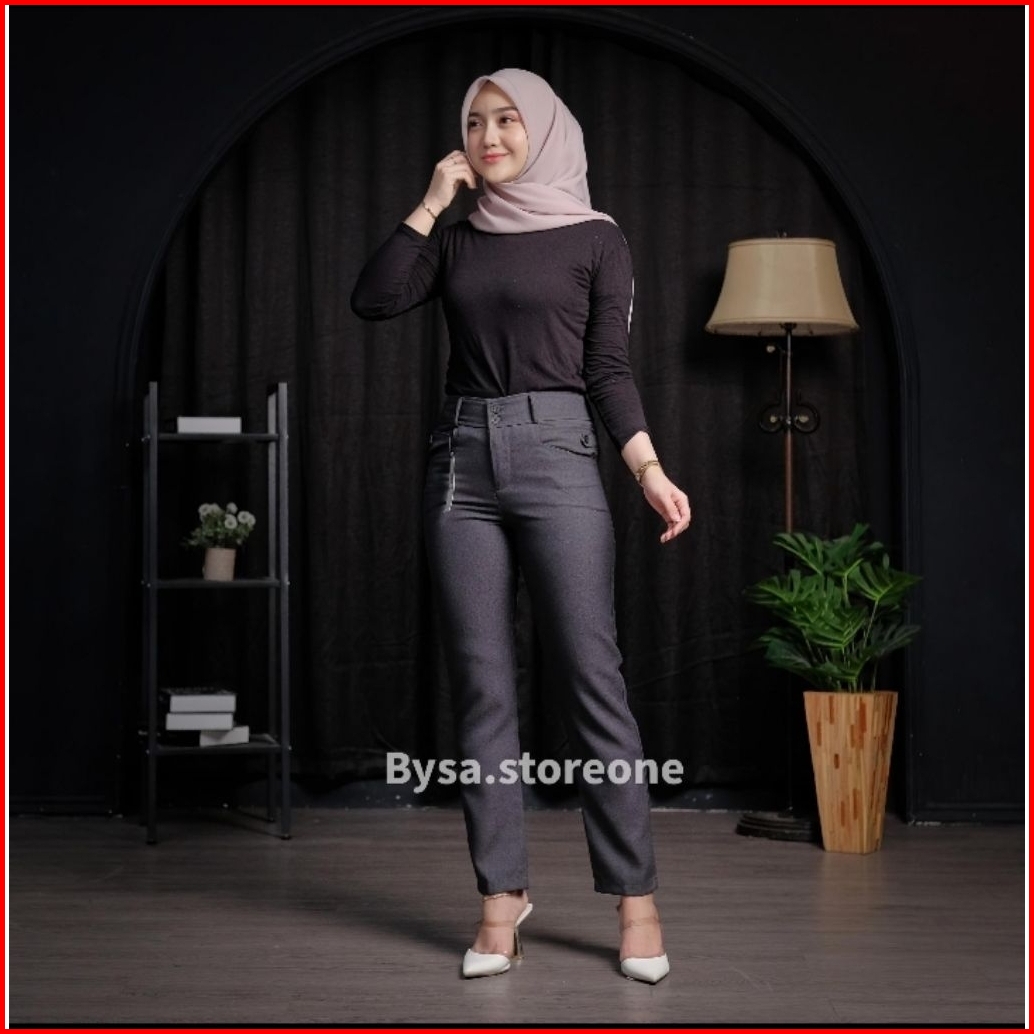 Celana Kerja Wanita Kantoran Formal Bahan Semi Woll Premium Model Skoder Saku Aktif Kancing Dua Variasi Standar Jumbo