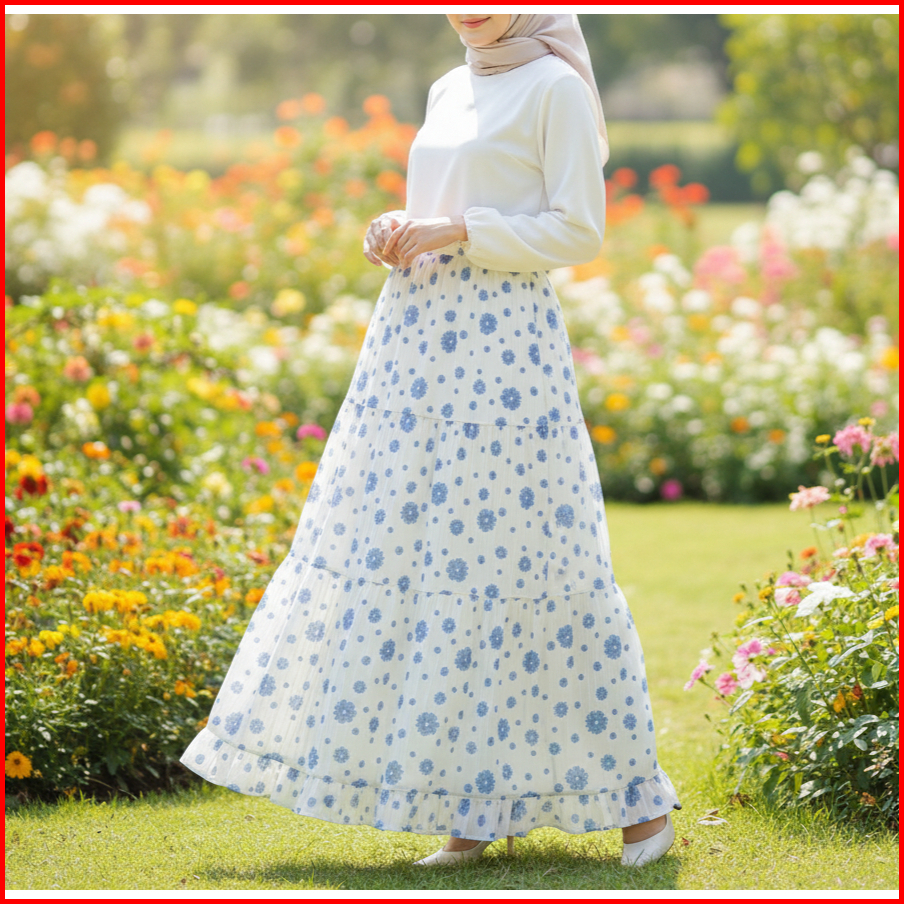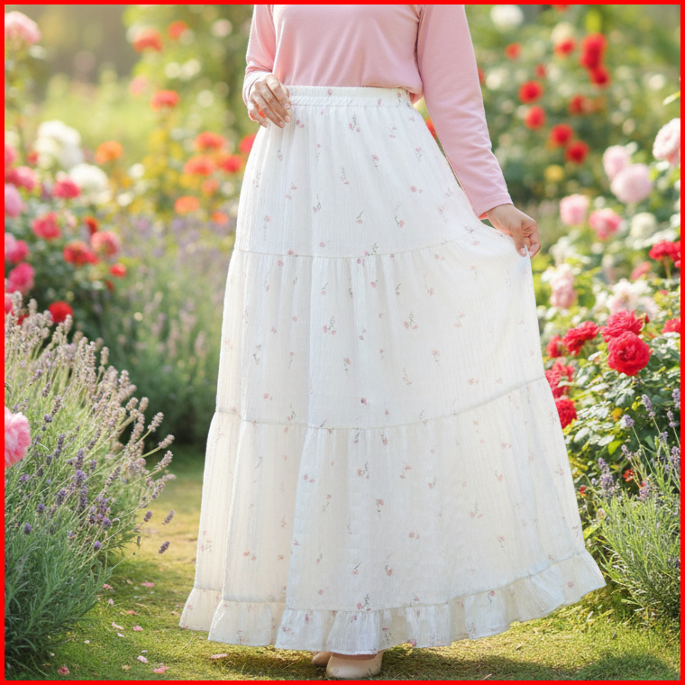 Rok Wanita Korea Style - Rok Maxi Panjang Motif Flower Model Kekinian