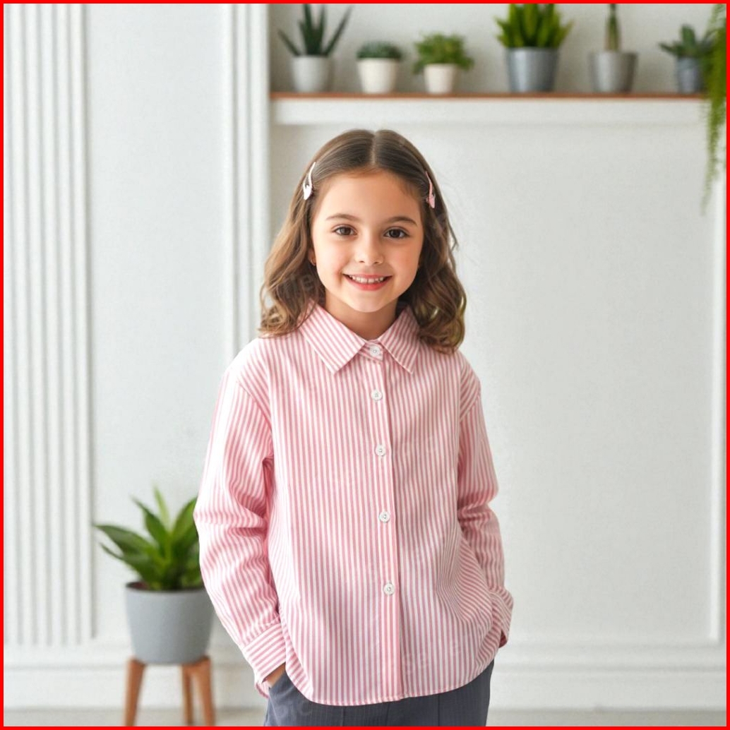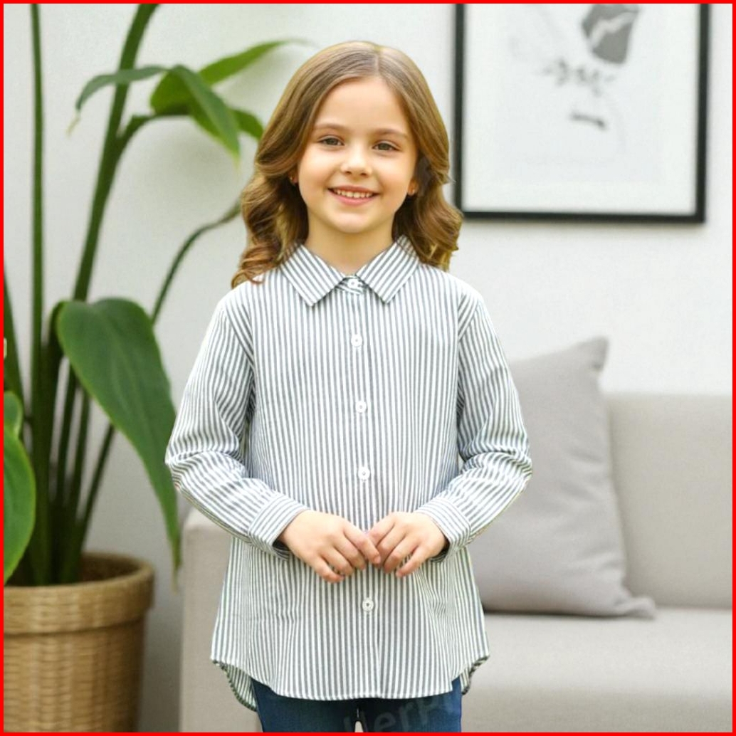 Kemeja Anak Perempuan Lengan Panjang 1-12 Tahun Baju Kemaja Anak Motif Garis Style Korean Oversize