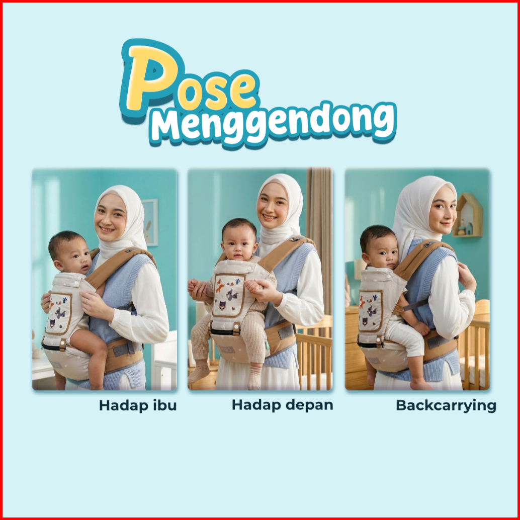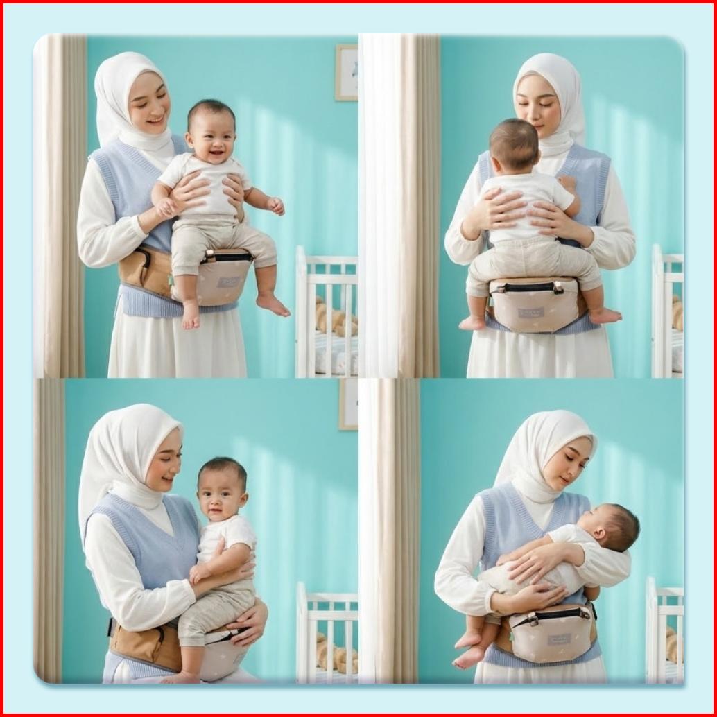 Think Baby Gendongan Bayi Hipseat Karakter Fox Friends Saku Penutup Kepala