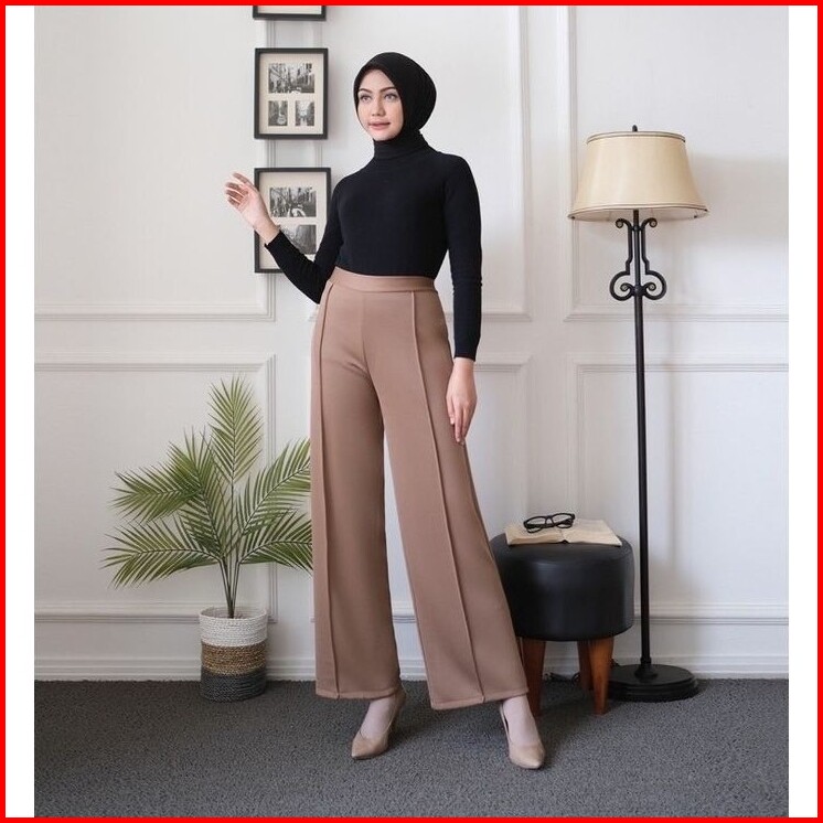 Celana Kulot Scuba Cubit Premium Pinggang Highwaist Bahan Stretch Melar Elastis Muat Bb 25-85kg