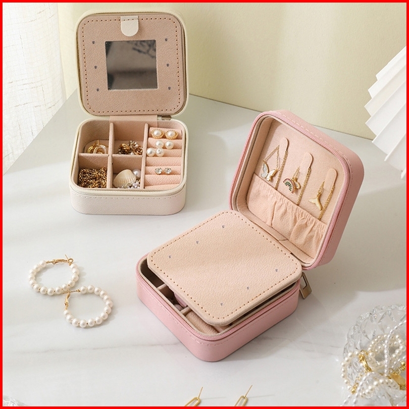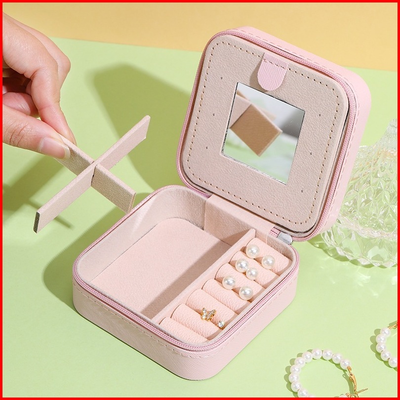 Portable Jewelry Box Jewelry Organizer Box Storage Box With Mirror Kotak Penyimpanan Cincin Kalung Anting