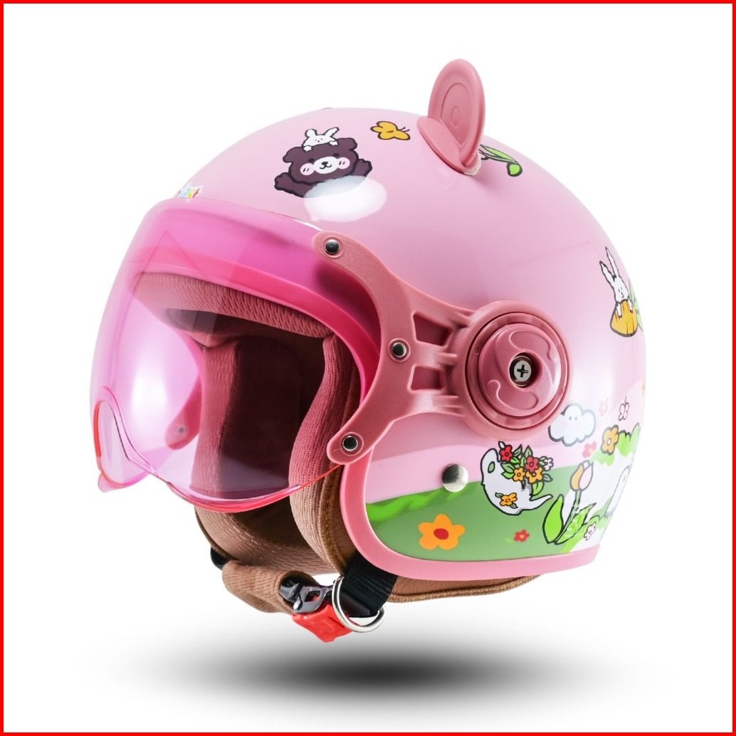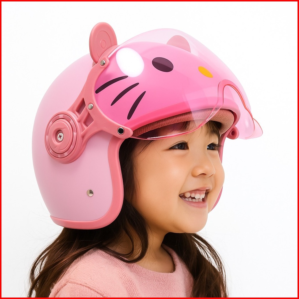 Helm Anak Lunar Kids Bagus Karakter Kartun Motif Pilot Lucu Pakai Kuping Panda Sni