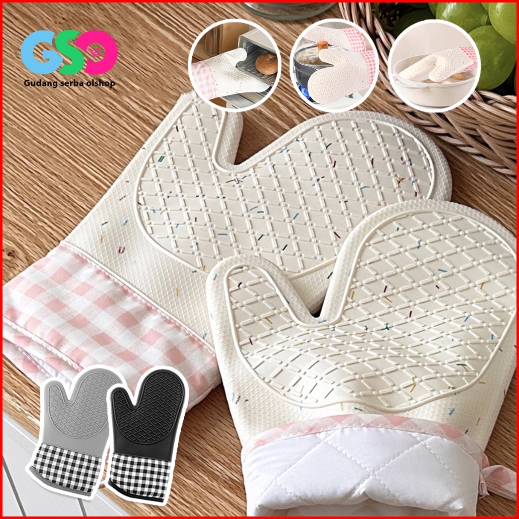 Sarung Tangan Oven Silikon Anti Panas 230 C Premium Tahan Bakar Tebal Untuk Memanggang Memasak Awet