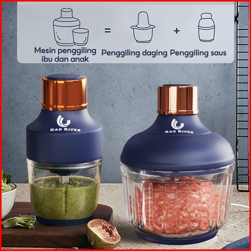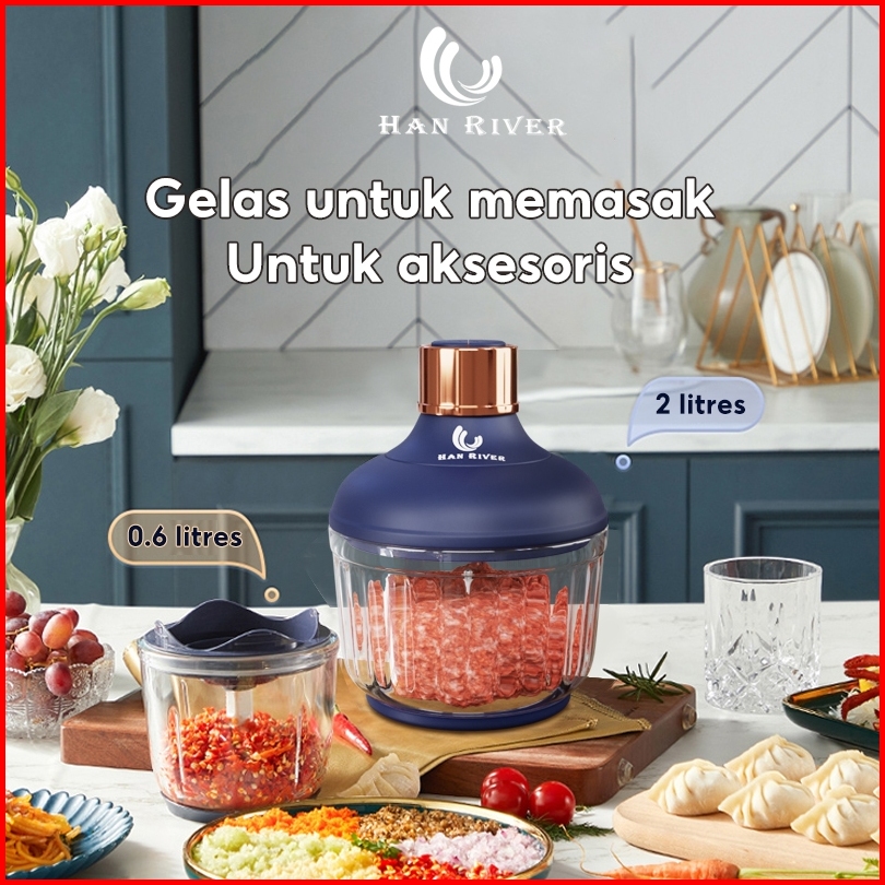 Han River Blender Chopper 2.5l 0.6l Piala Ganda 2 In 1 Kaca Blender