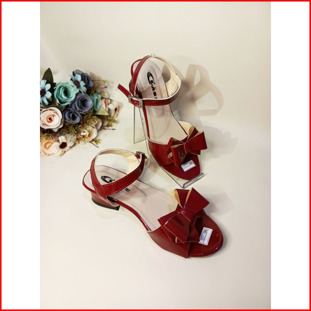 Sandal Anak Perempuan Pesta Hak 3 Cm Motif Pita Gesper Elegan Selop Sol Karet Anti Licin