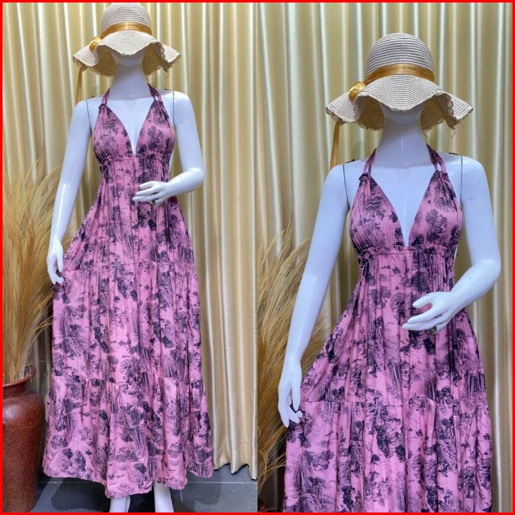 Malika Long Dress Dress Pantai Long Dress V Neck Rayon Dress Cantik