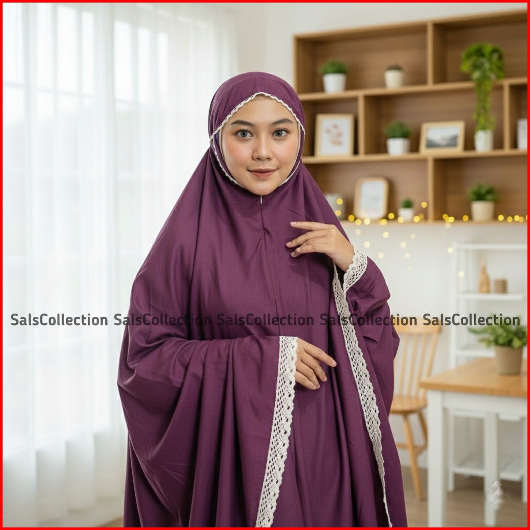 Mukena Dewasa Travel Katun Premium 2 In 1 Reselting Renda Bahan Halus Adem Elegan