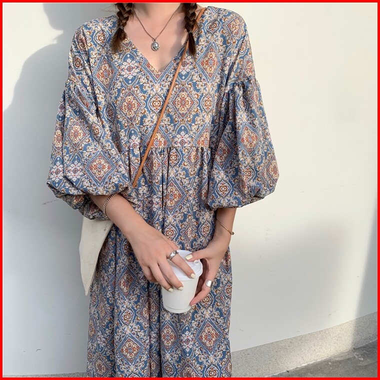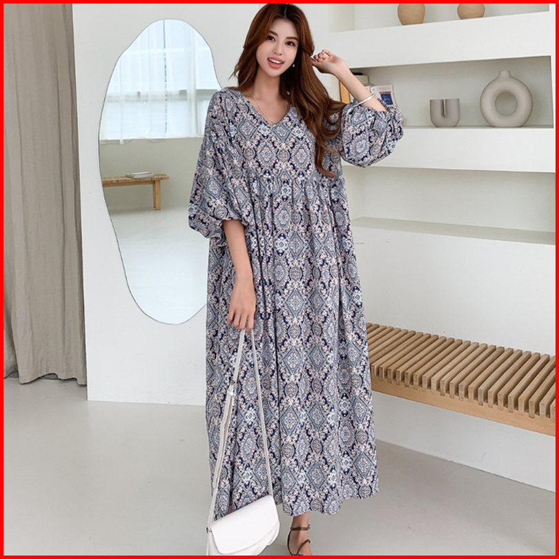 Drees Korea Bohemian Dress Anandayu Dark Grey Bohemian Dress Passion Flower Dress Bohemian Dress Dress Korean Style Midi