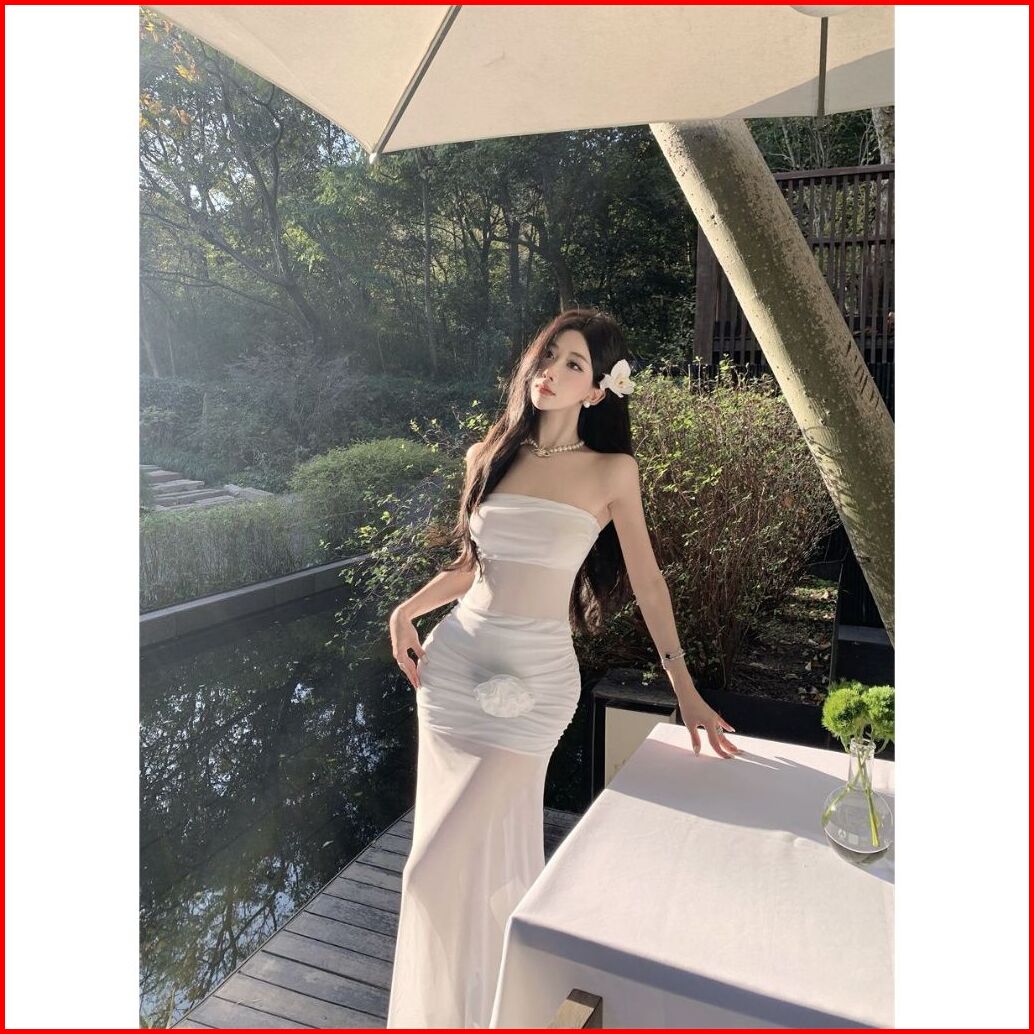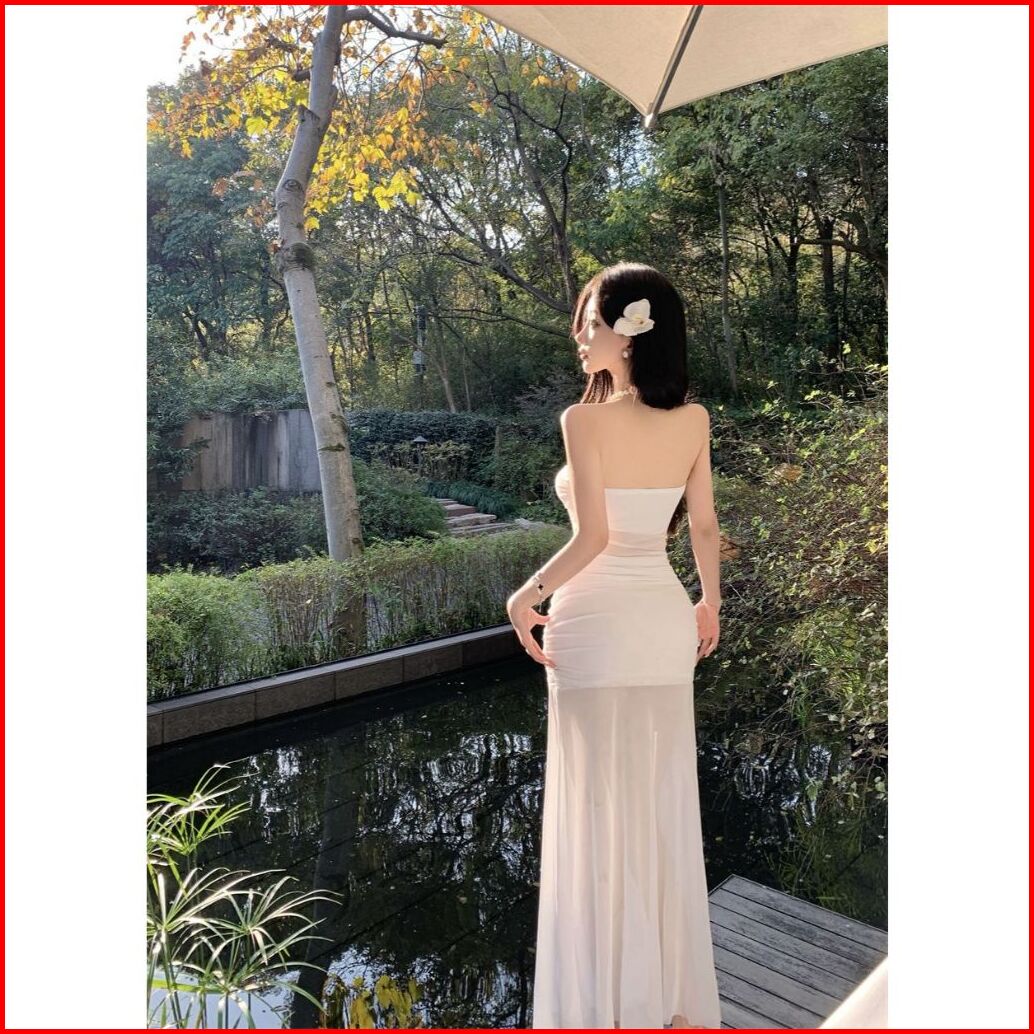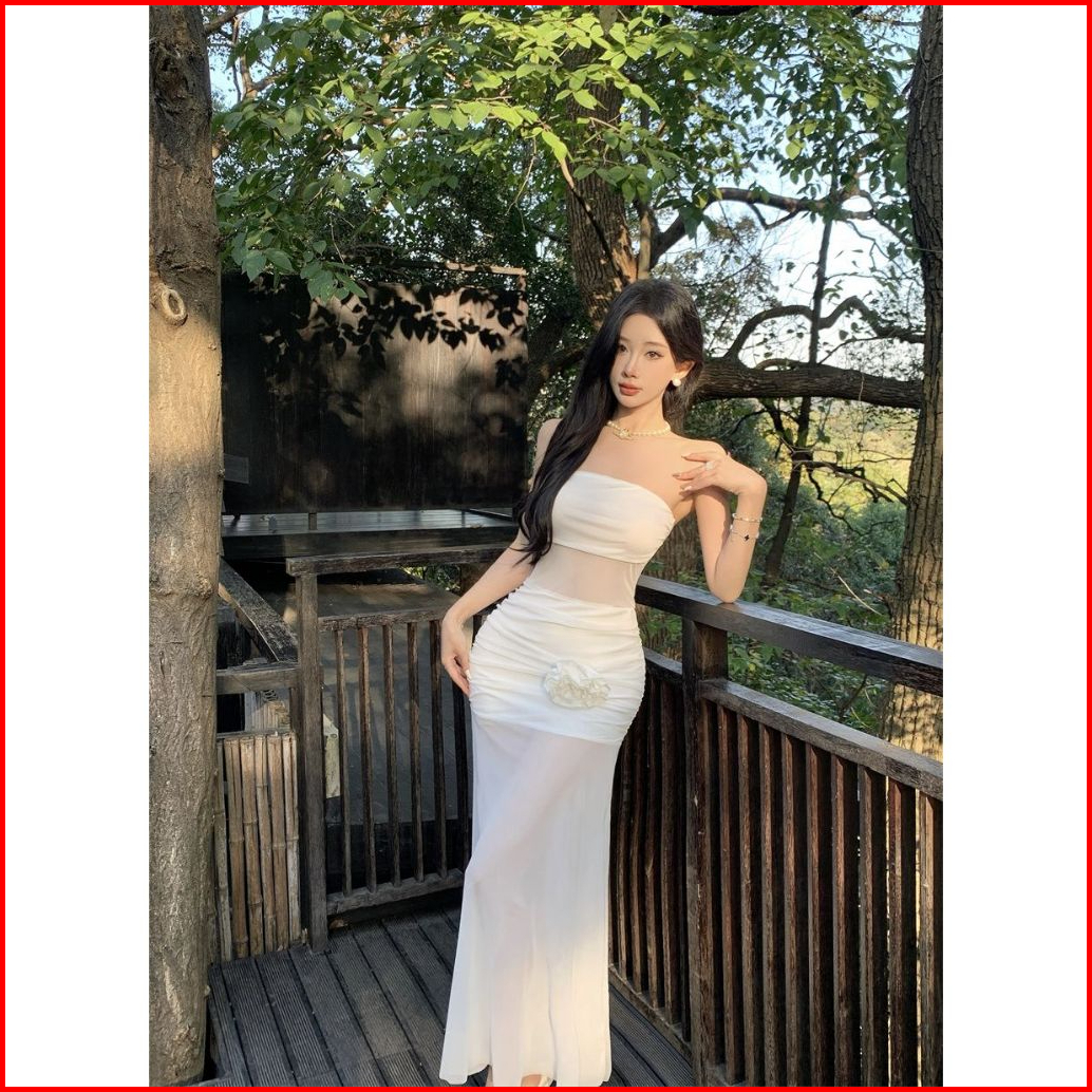 Dr8086 Dress White Long Bodycon Terbaru Model Elegant Cocok Buat Santai Dress Pantai Dress Maxi Tersedia Ukuran S M L Xl