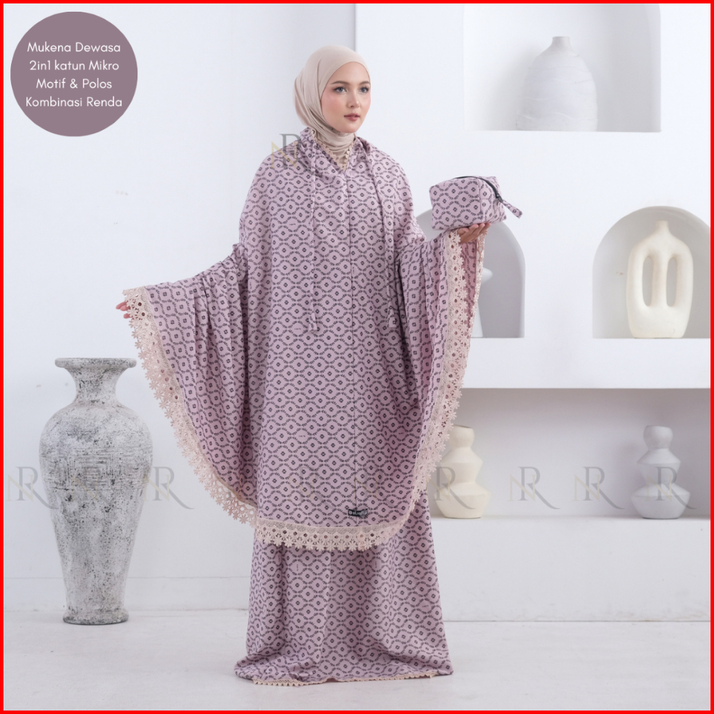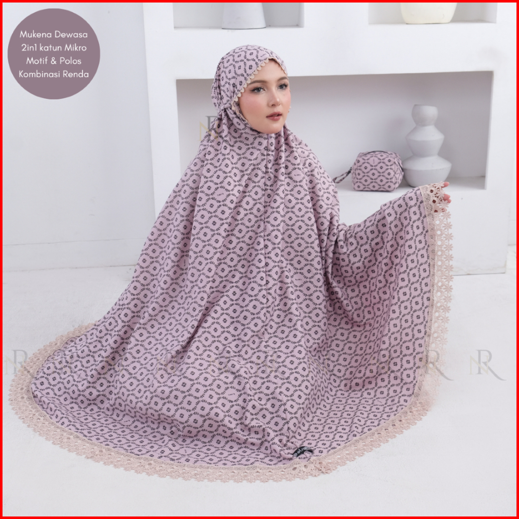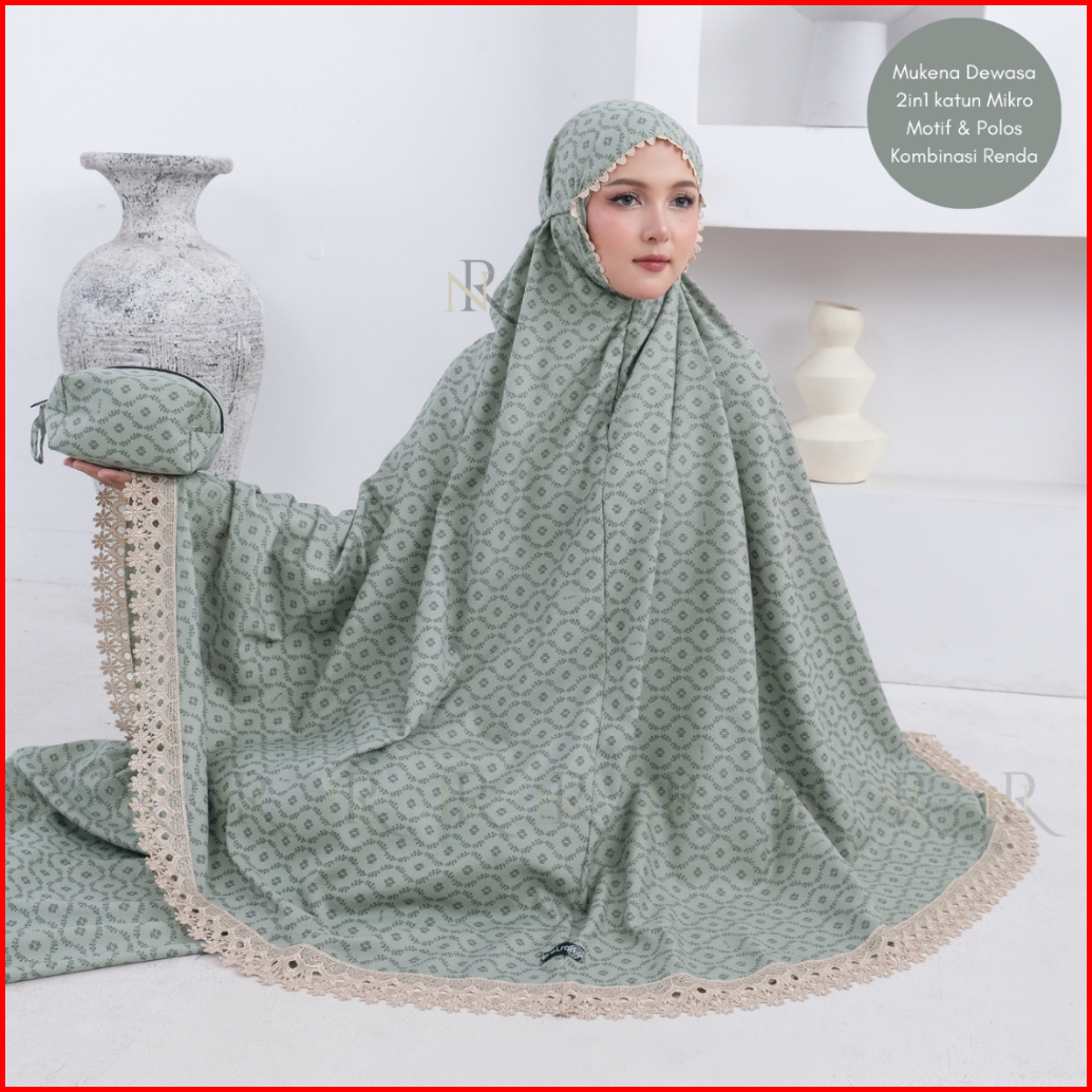 Nairhu Mukena 2in Katun Motif Kombinasi Renda Bordir Hafizahseries