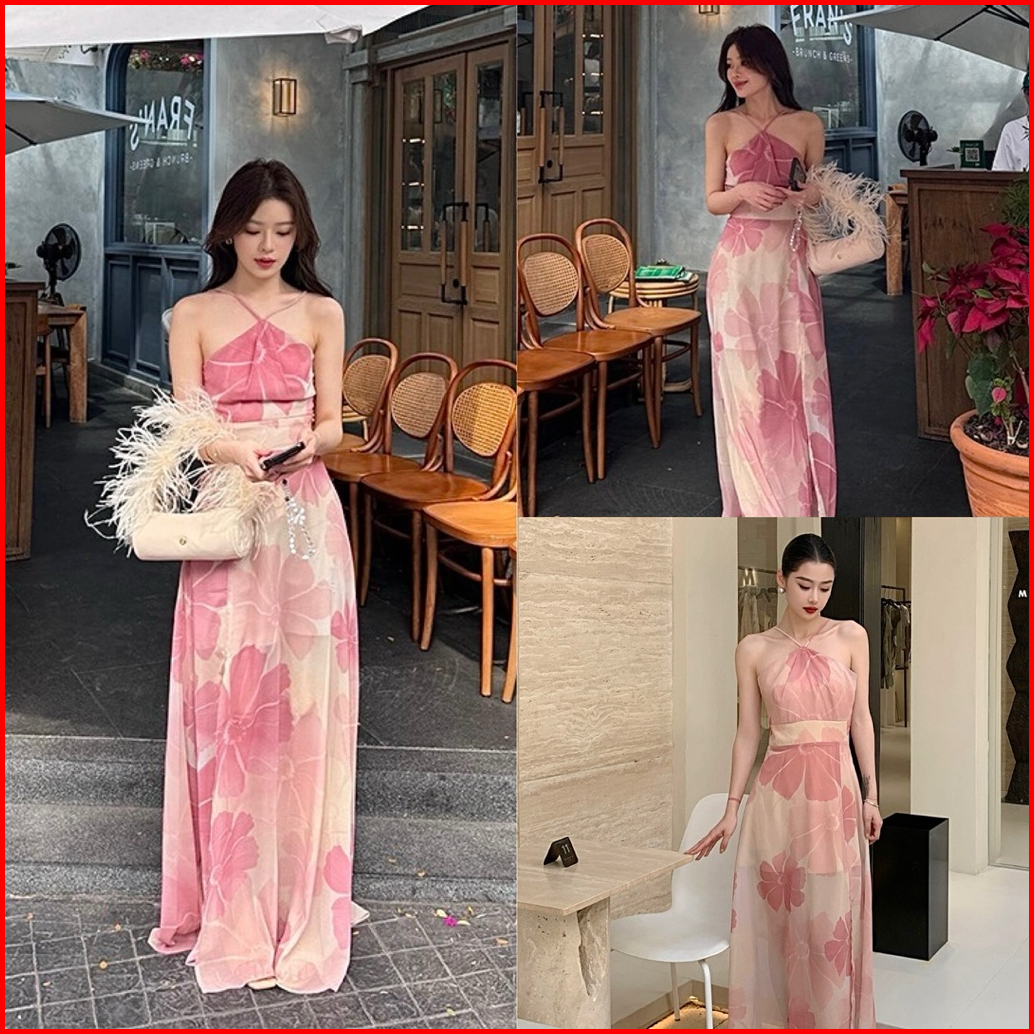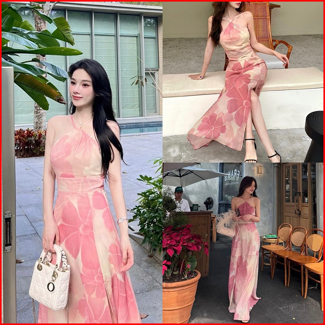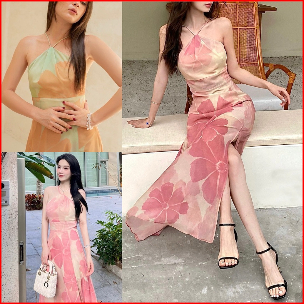 D1691 Ledigaa Korean Style Halter Vintage Maxi Dress Pantai Musim Panas Liburan Floral