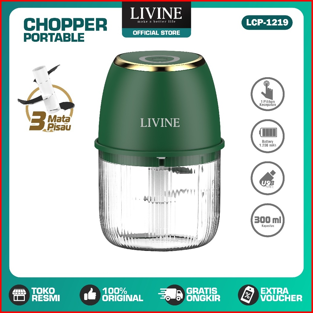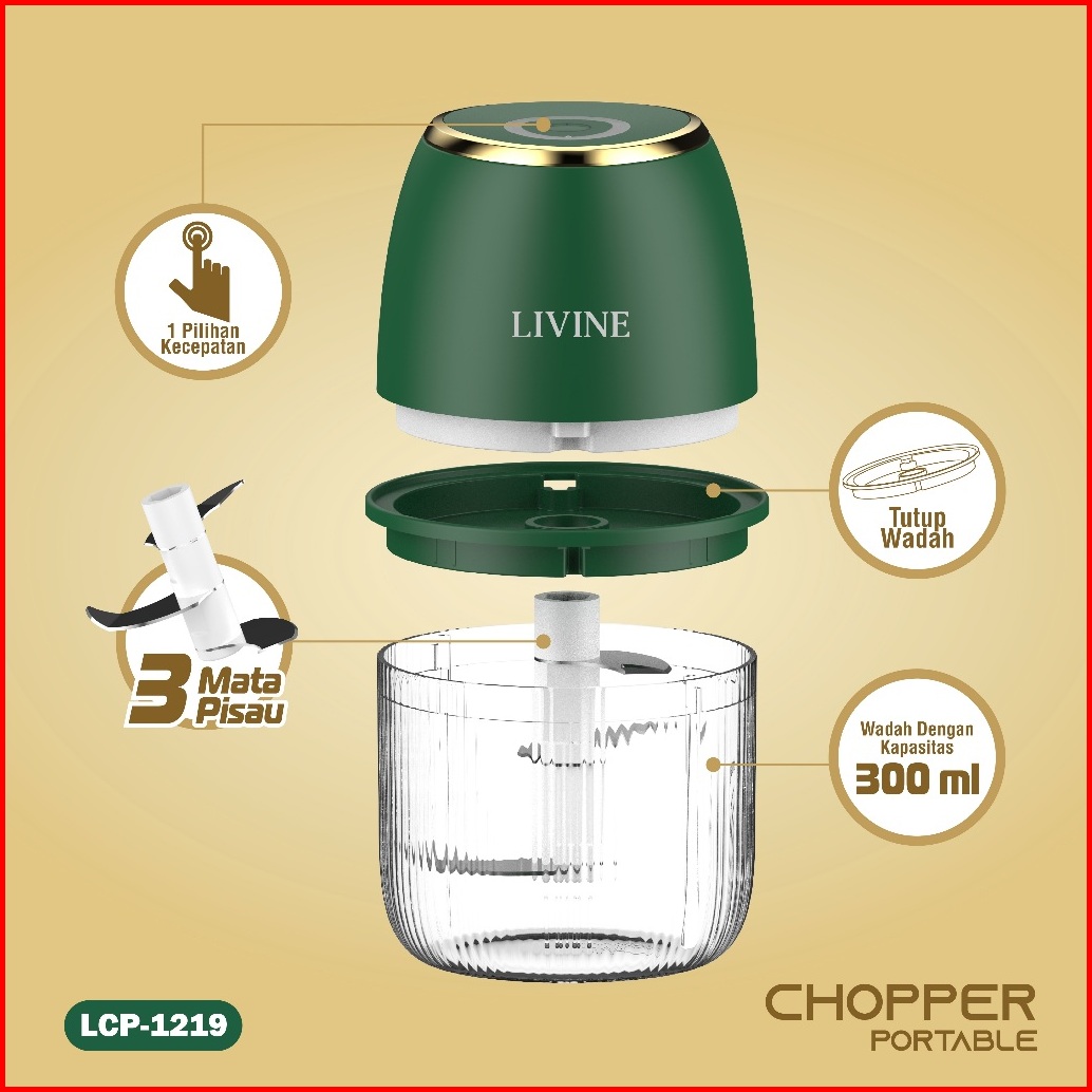 Livine Mini Chopper 3 Mata Pisau 300ml Blender Bumbu Dapur Listrik Cincang Daging Bawang Portable