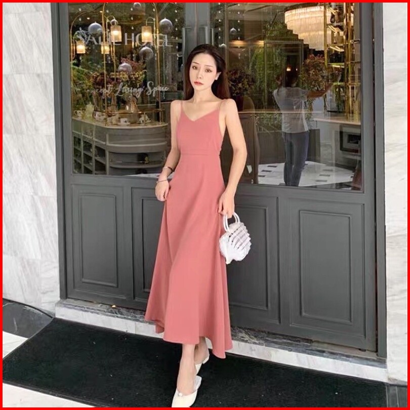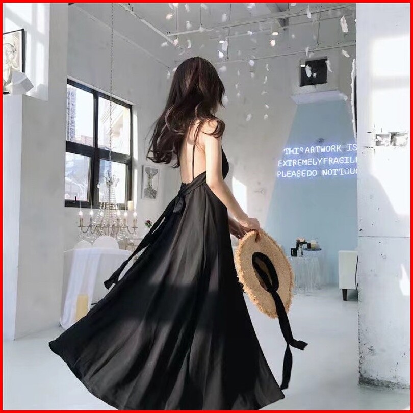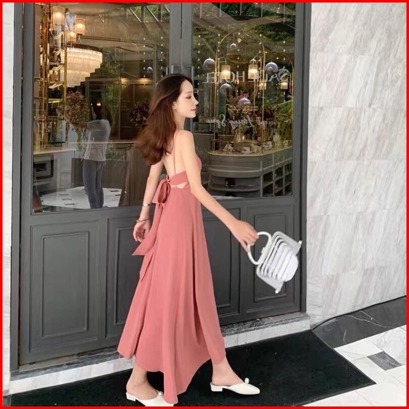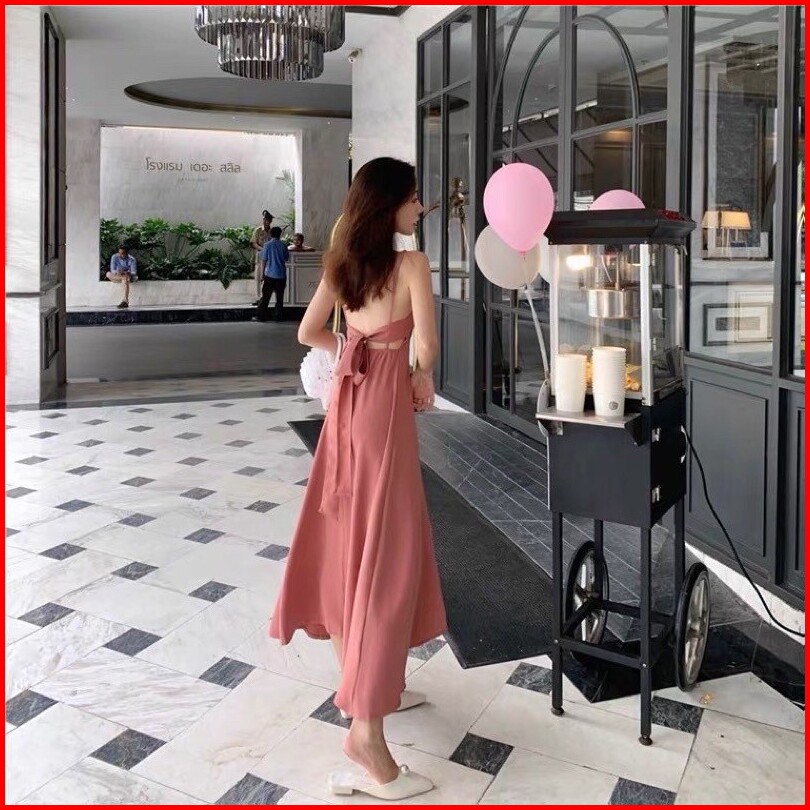 F176 Korean Backless Dress Dress Pantai Long Dress Maxi Dress Tren Fashion.id