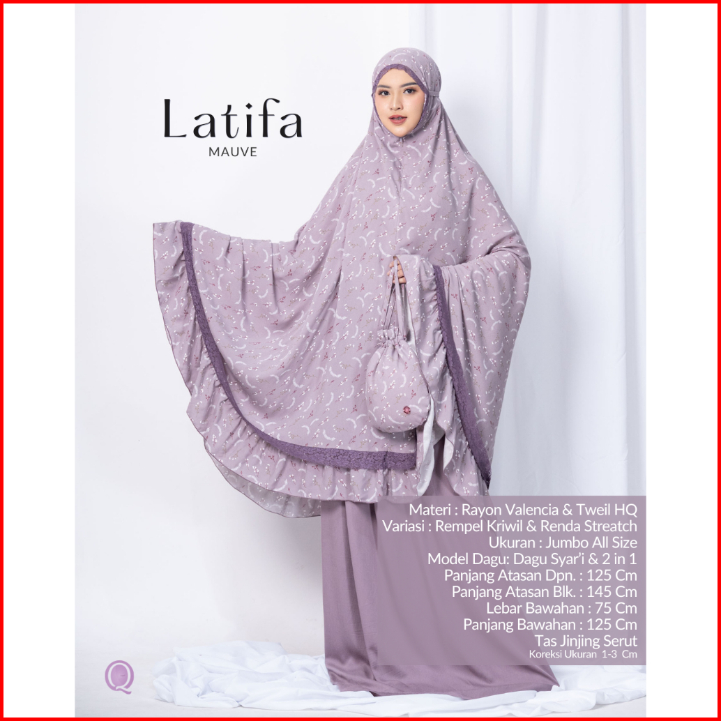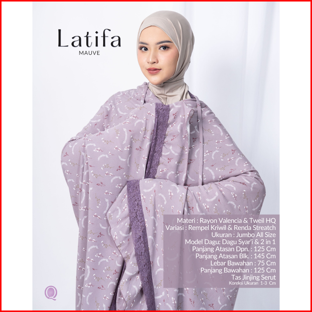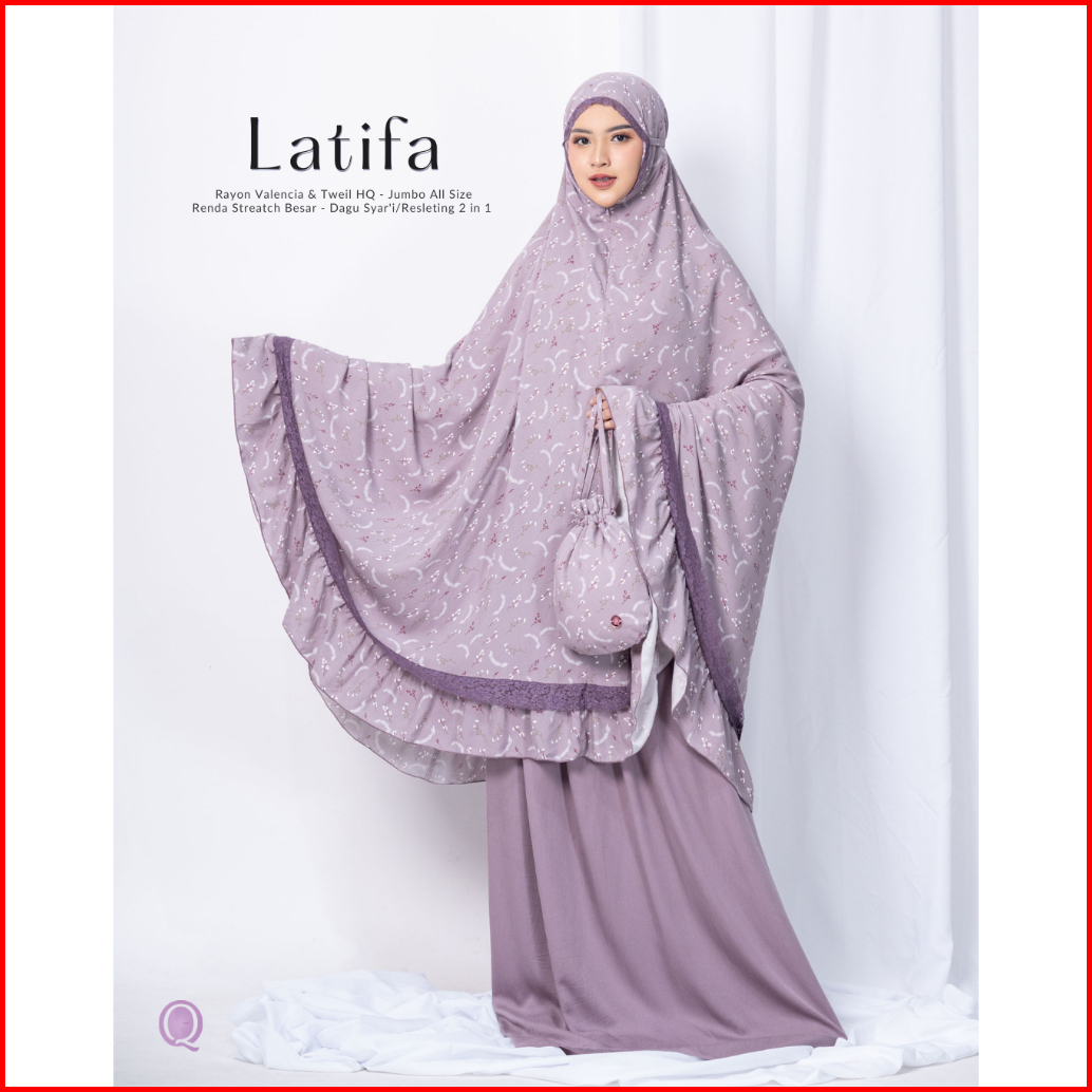 Mukena Latifa Eksklusif Renda Series - Mukenah Dewasa Katun Rayon Valencia Premium Jumbo - Atas Bawah Terbaru Resleting