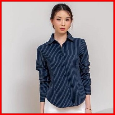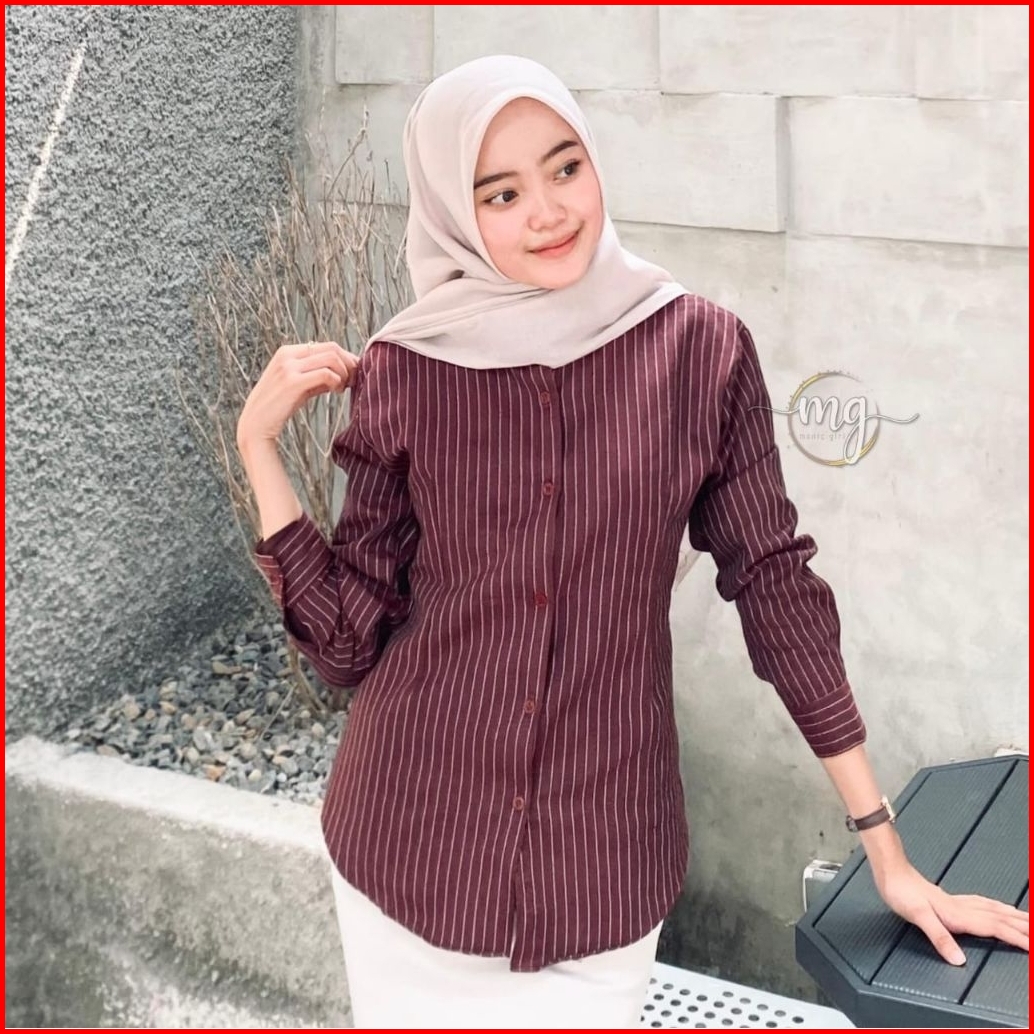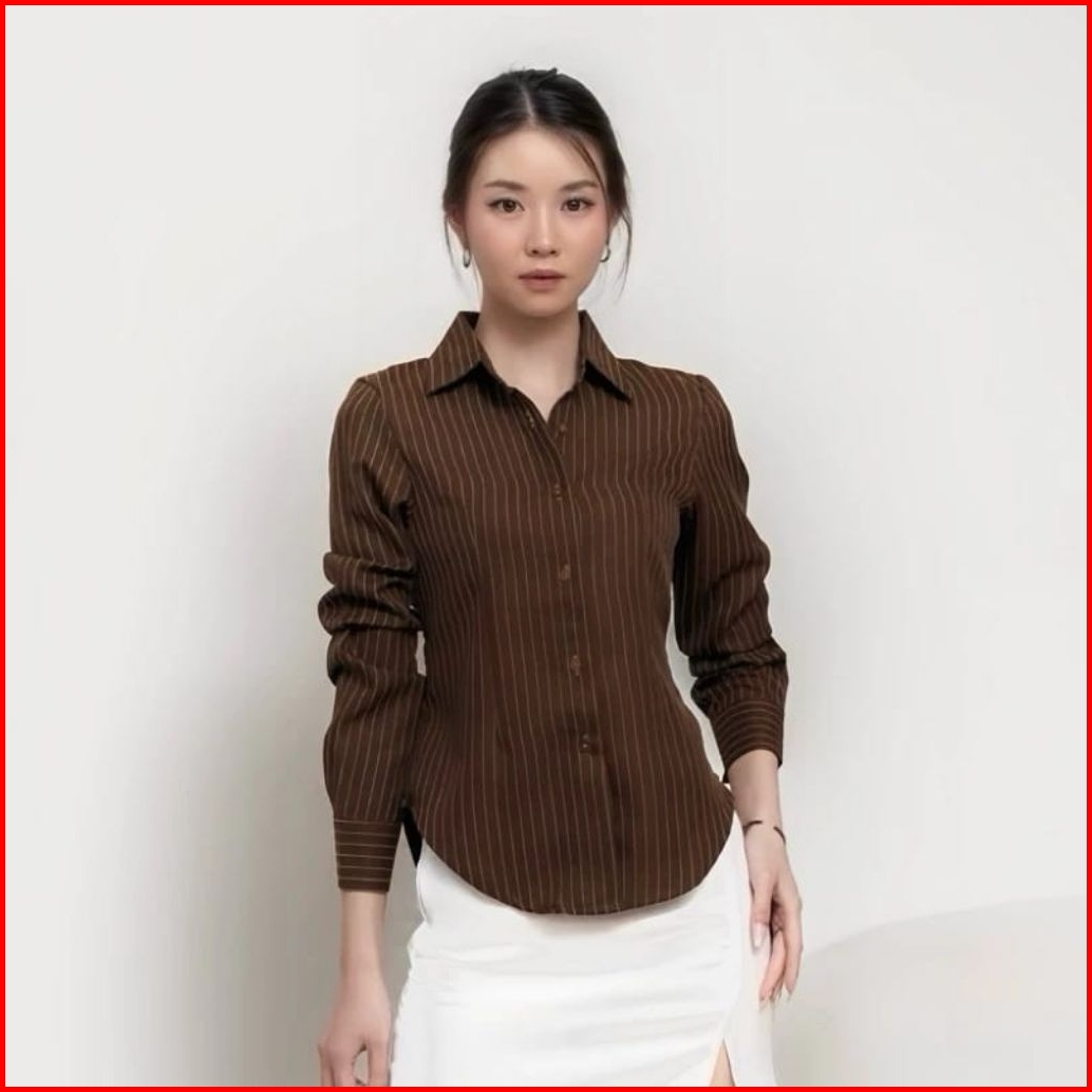 M119 - Kemeja Wispie Kemeja Garis Luna Stripe Lengan Panjang Wanita Kekinian