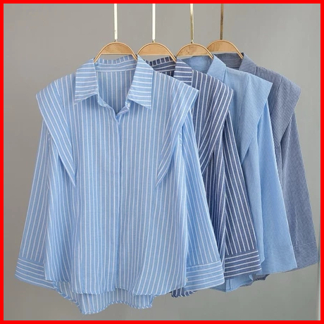 Kemeja Salur Wanita Terbaru Style Korea Murah Full Kancing Busui Friendly