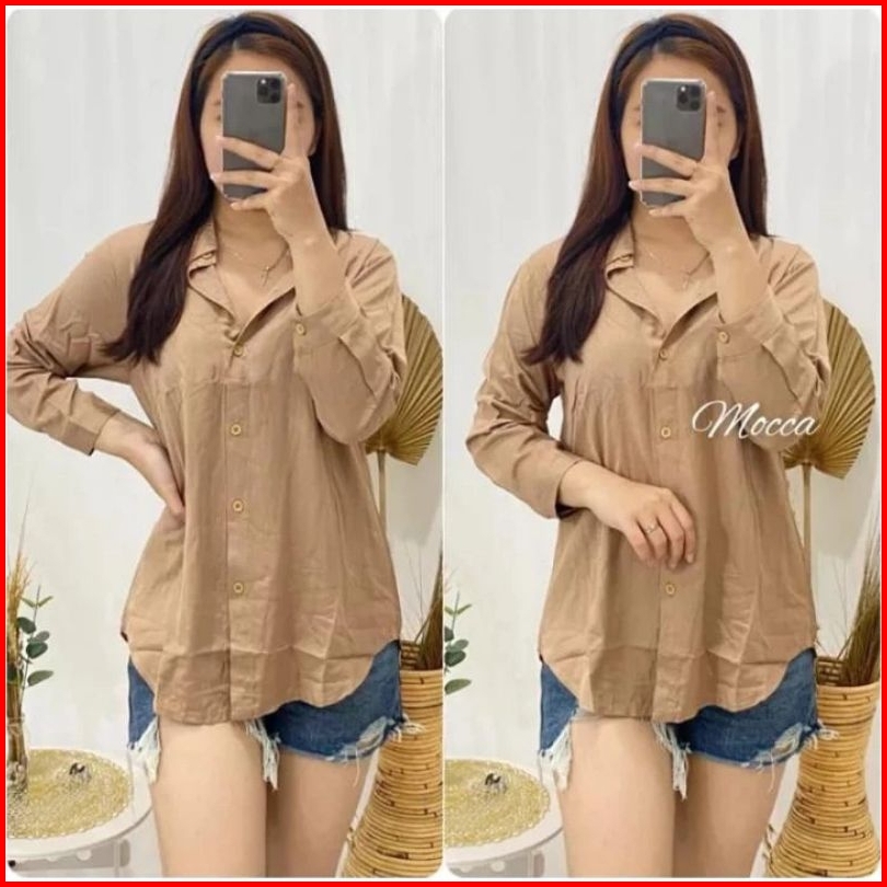 Kemeja Wanita Rayon Twile Atasan Kemeja Polos Bahan Adem Atasan Blous Ful Kancing Leher Kerah Atasan Kemeja Casual Cocok