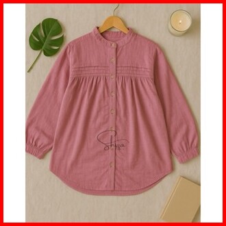Shiza Kemeja Wanita Linen Lengan Panjang Kemeja Kerja Basic Blouse