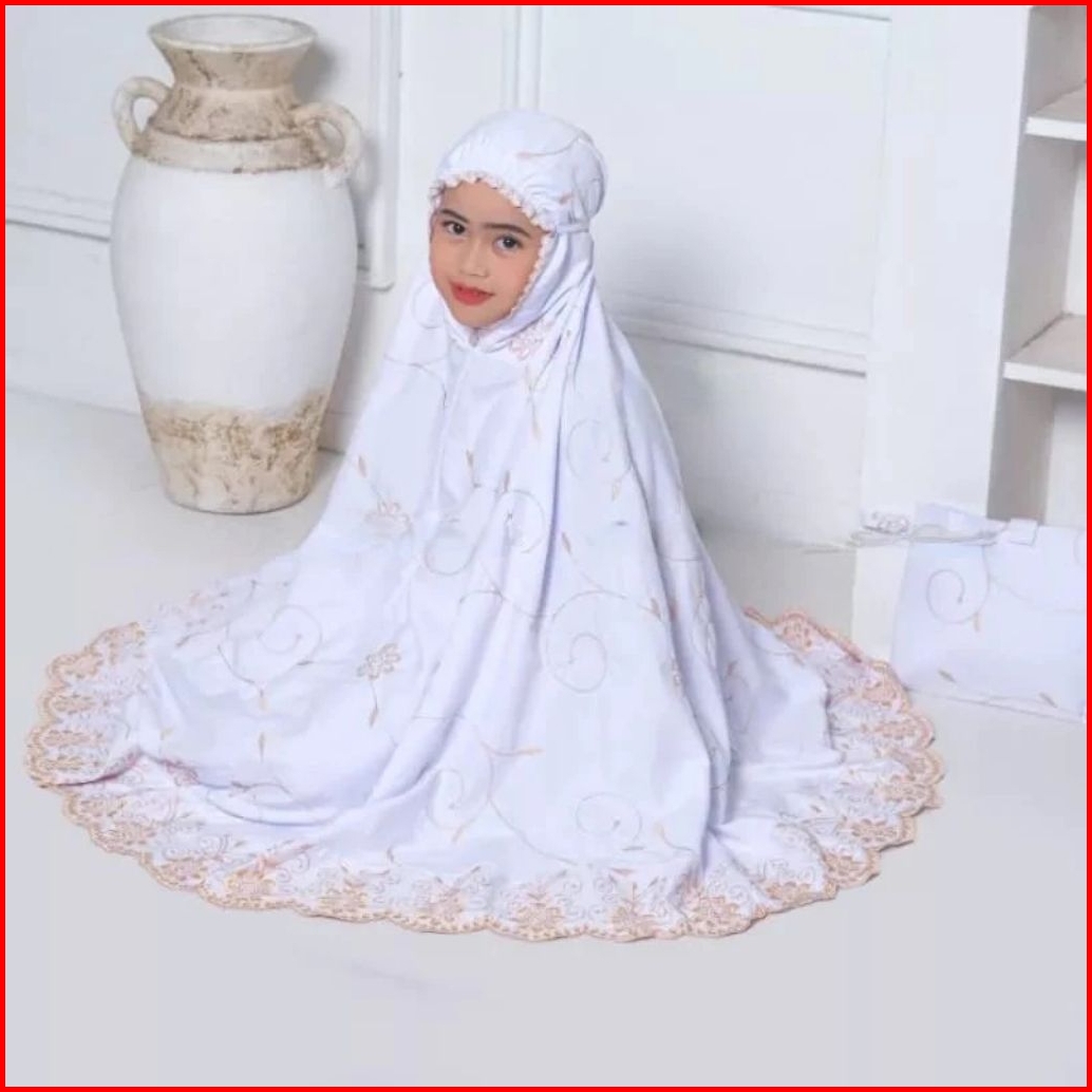 Mukena Anak Gracella Usia 6-12 Tahun Full Bordir Katun Premium Terbaru