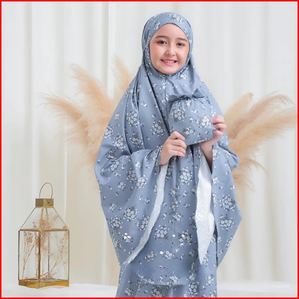 Mukena Iklima Mukena Anak 2in1 Usia 6-15 Tahun Motif Bunga Print Resleting