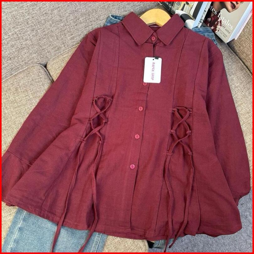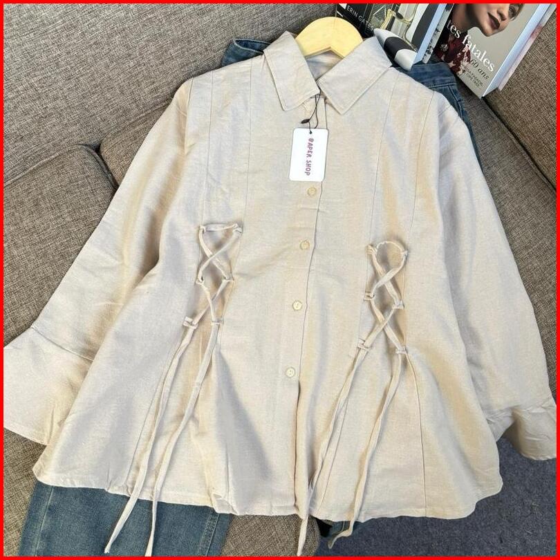 Evarisse Linen Shirt Warna Beragam Ukuran All Size Tali Pinggang
