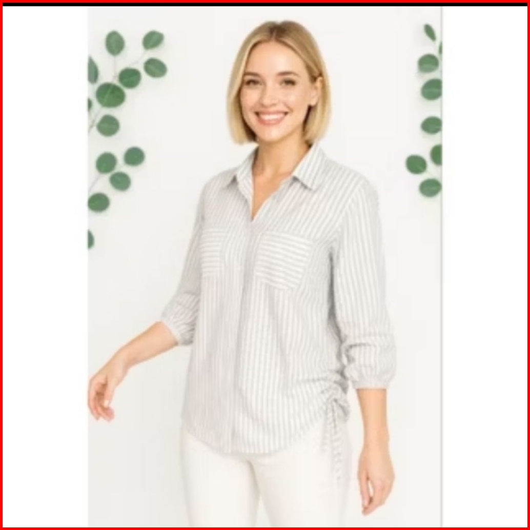Kemeja Salur Serut Kiara Besseler Katun Poly Atasan Wanita Salur Serut Terlaris Kekinian