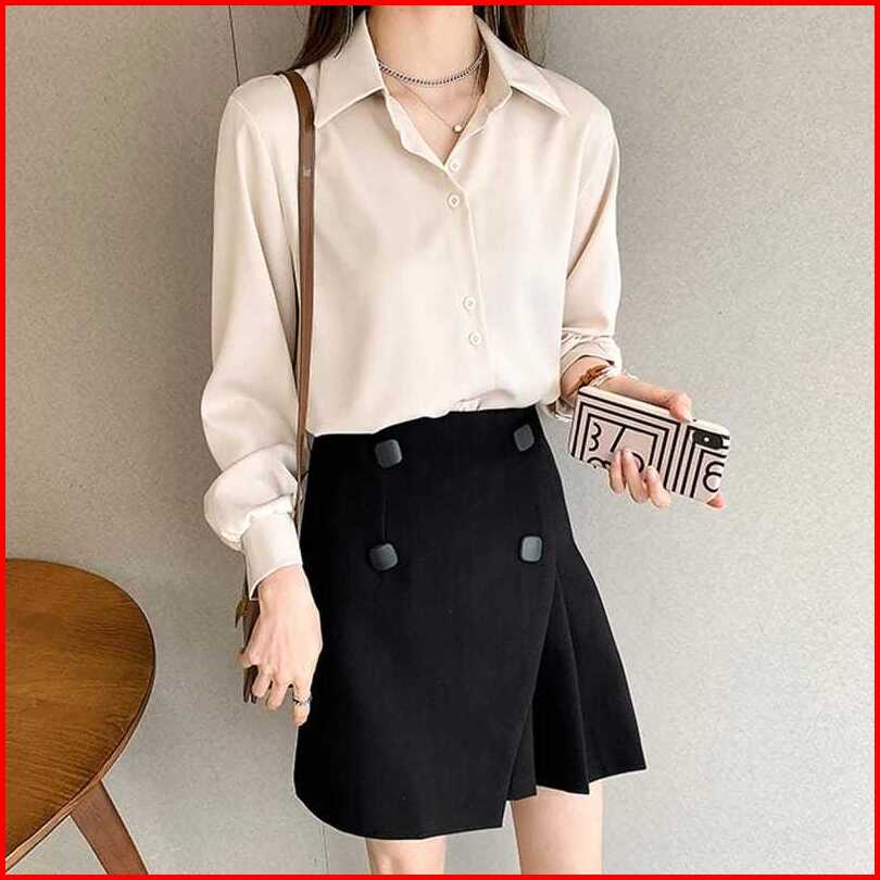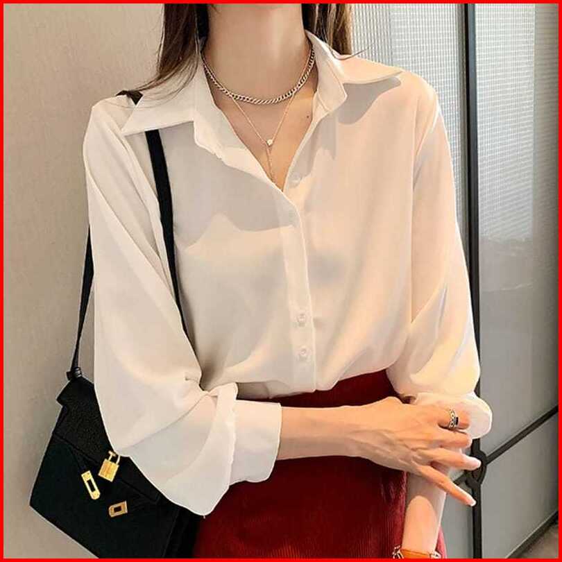 Atasan Kemeja Wanita Lengan Panjang Polos Kemeja Kerja Best Seller Kekinian Korean Style