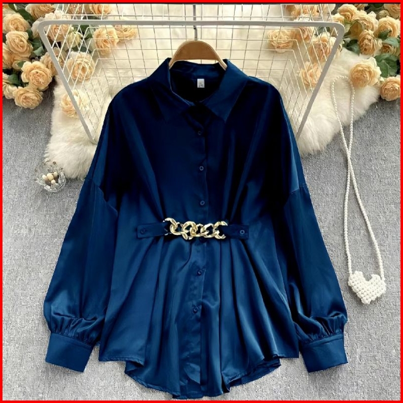 Melda Crinkle Kemeja Kerja Wanita Atasan Polos Korean Sytle Premium Blouse Terlaris