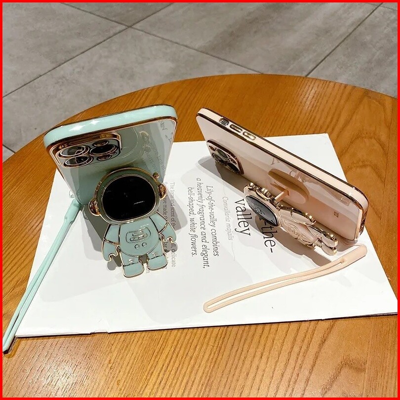 Soft Case Import Samsung Galaxy A07 Casing Silikon Dudukan Astronot Plating Free Tali Lanyard