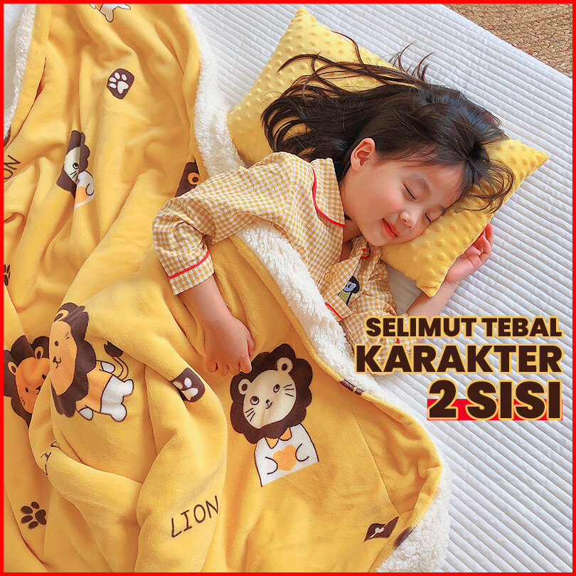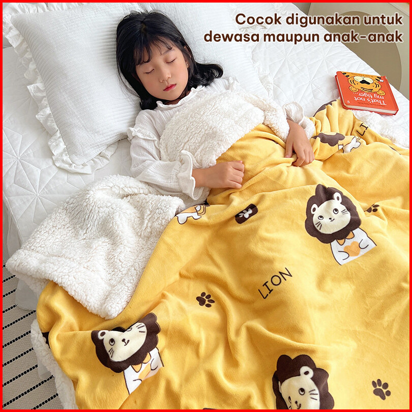 Selimut Bulu Halus Anak Tebal Ukuran King 180cm X 200cm Karakter Hewan 2sisi Mt-5a