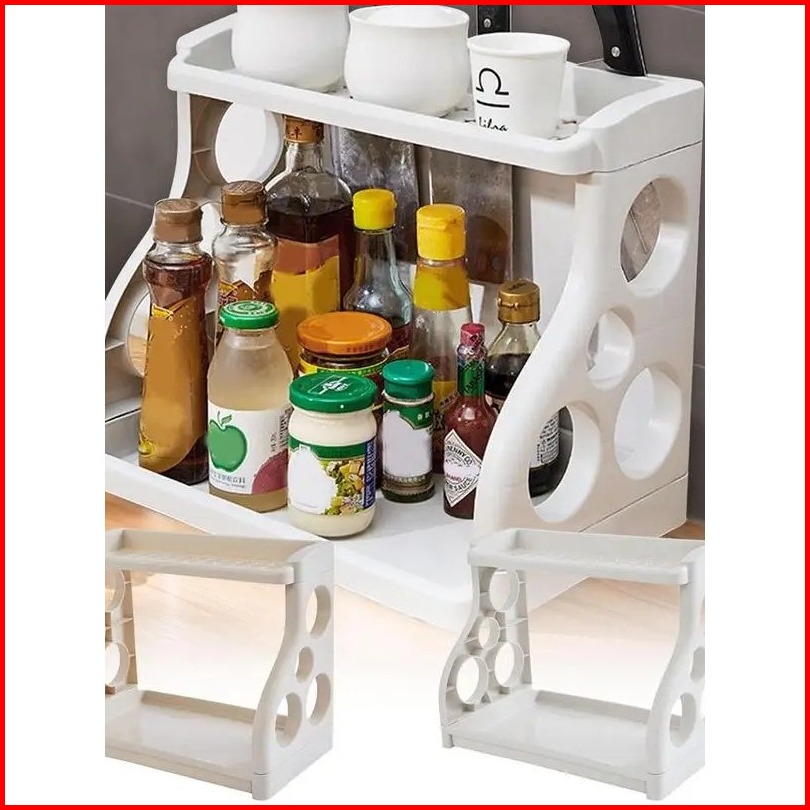 Rak Tempat Bumbu Dapur Dan Pisau 2 Susun - Rak Plastik Susun Serbaguna