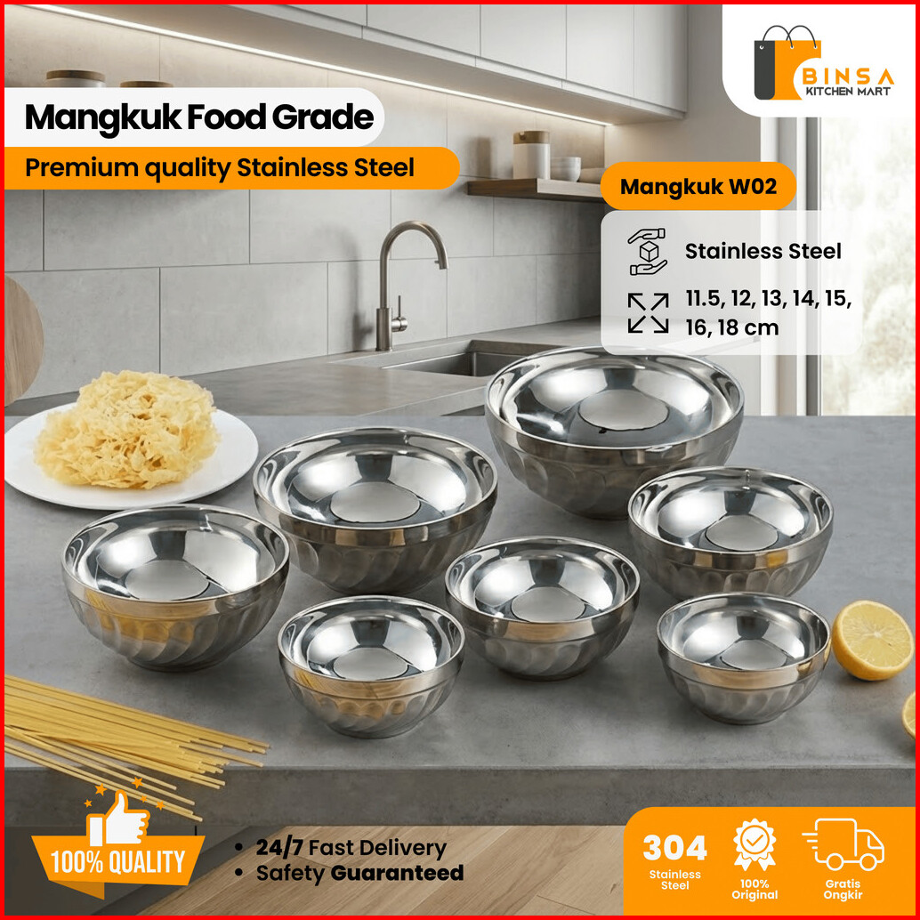 Binsa - Mangkuk Korea Stainless Tebal Baskom Sup Serbaguna Tahan Panas Food Grade W02