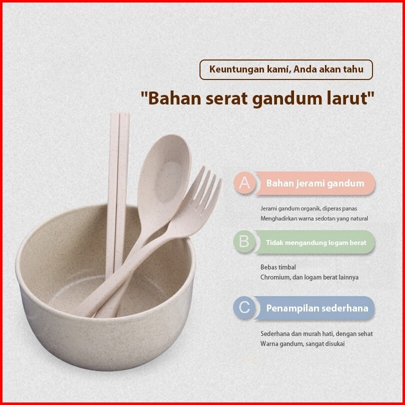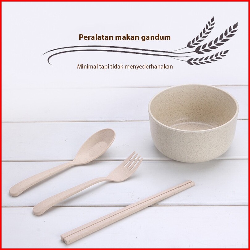 Blue Crown 4pcs Peralatan Makan Rumah Kreatif Jerami Gandum Mangkuk Plastik Anti-drop Gaya Jepang